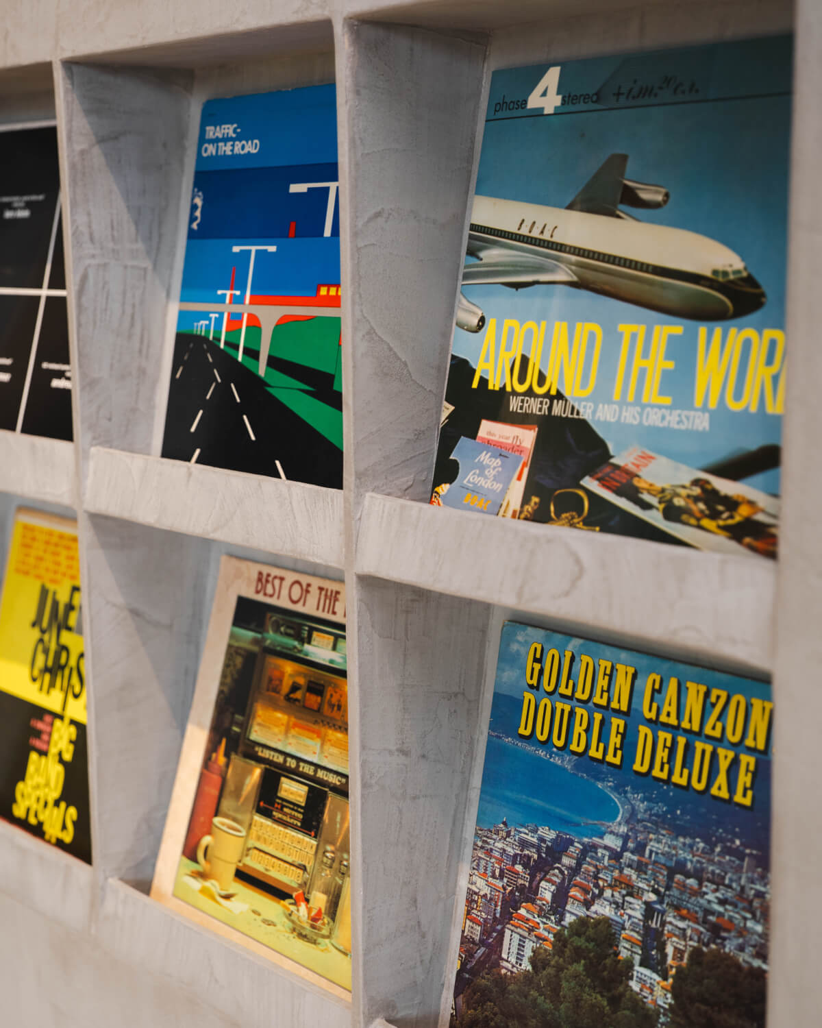 レコードやアート、まるでクローゼットを覗き見るような、リップや香水が散りばめられたジュエリーケースなどさりげない遊び心が詰まっています。