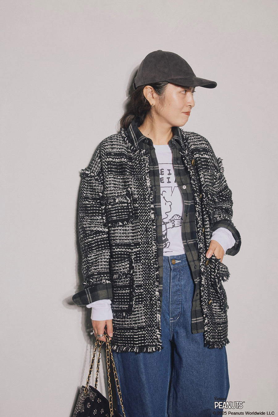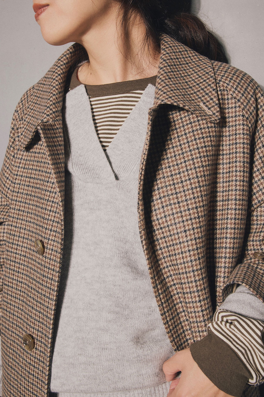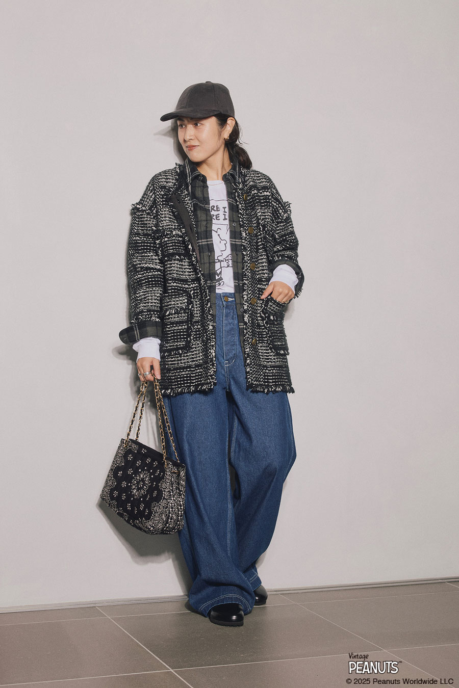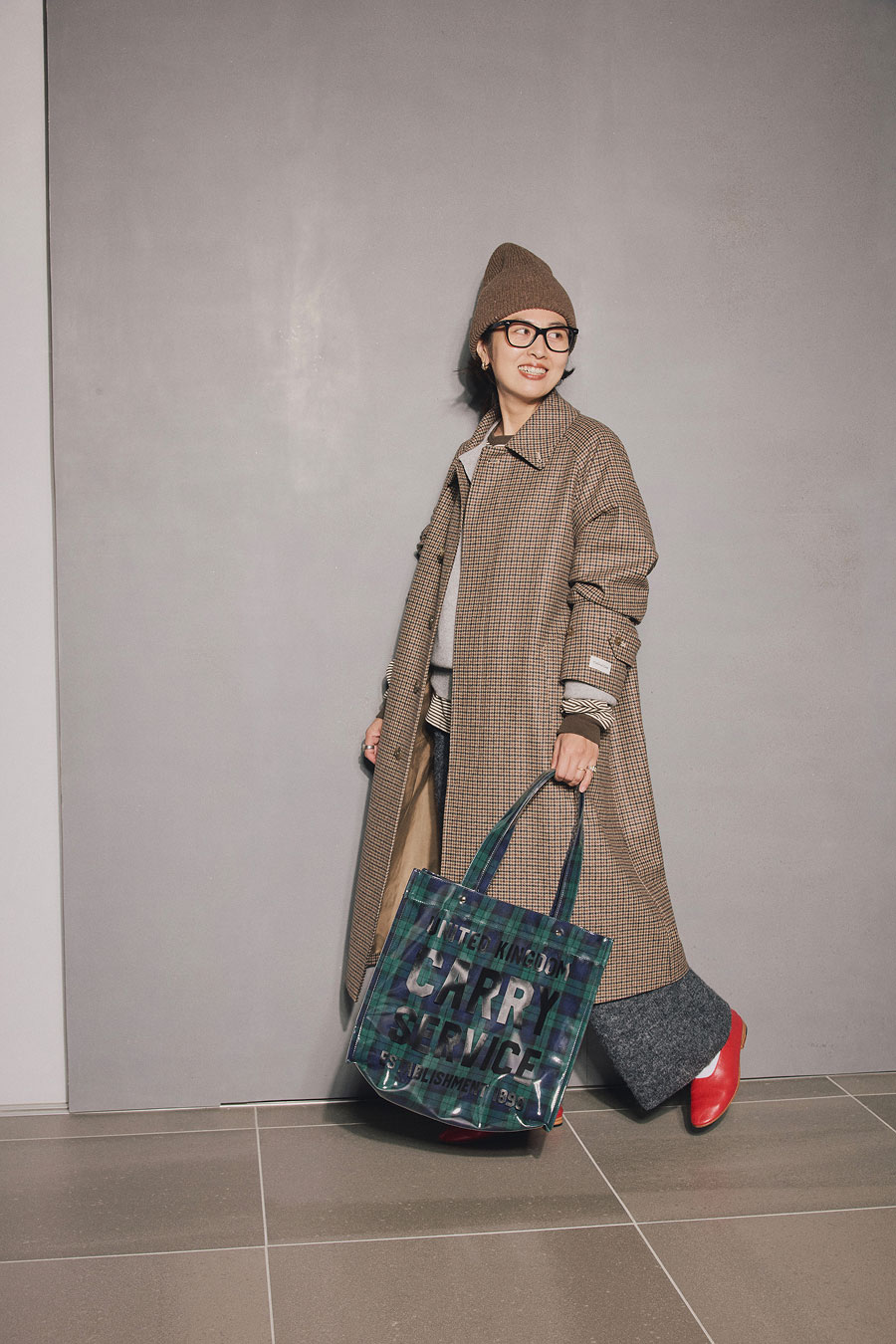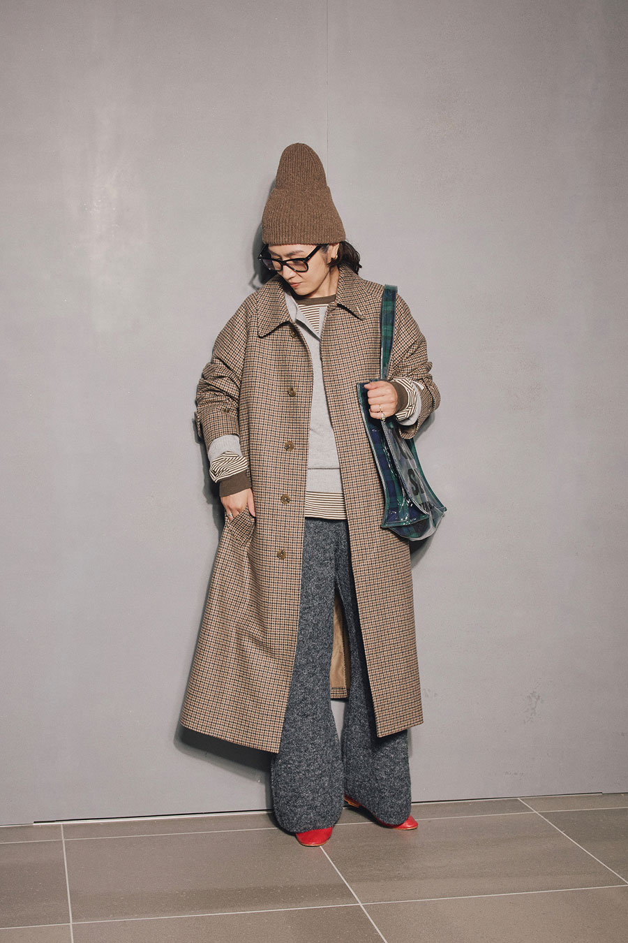 チェックコートを主役に素材の掛け合わせを楽しむ
