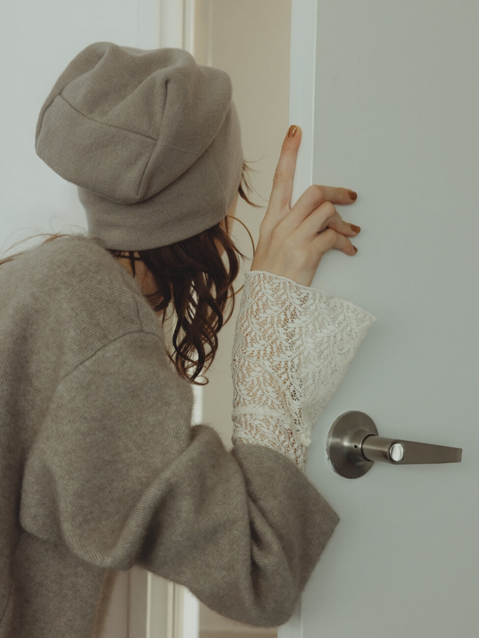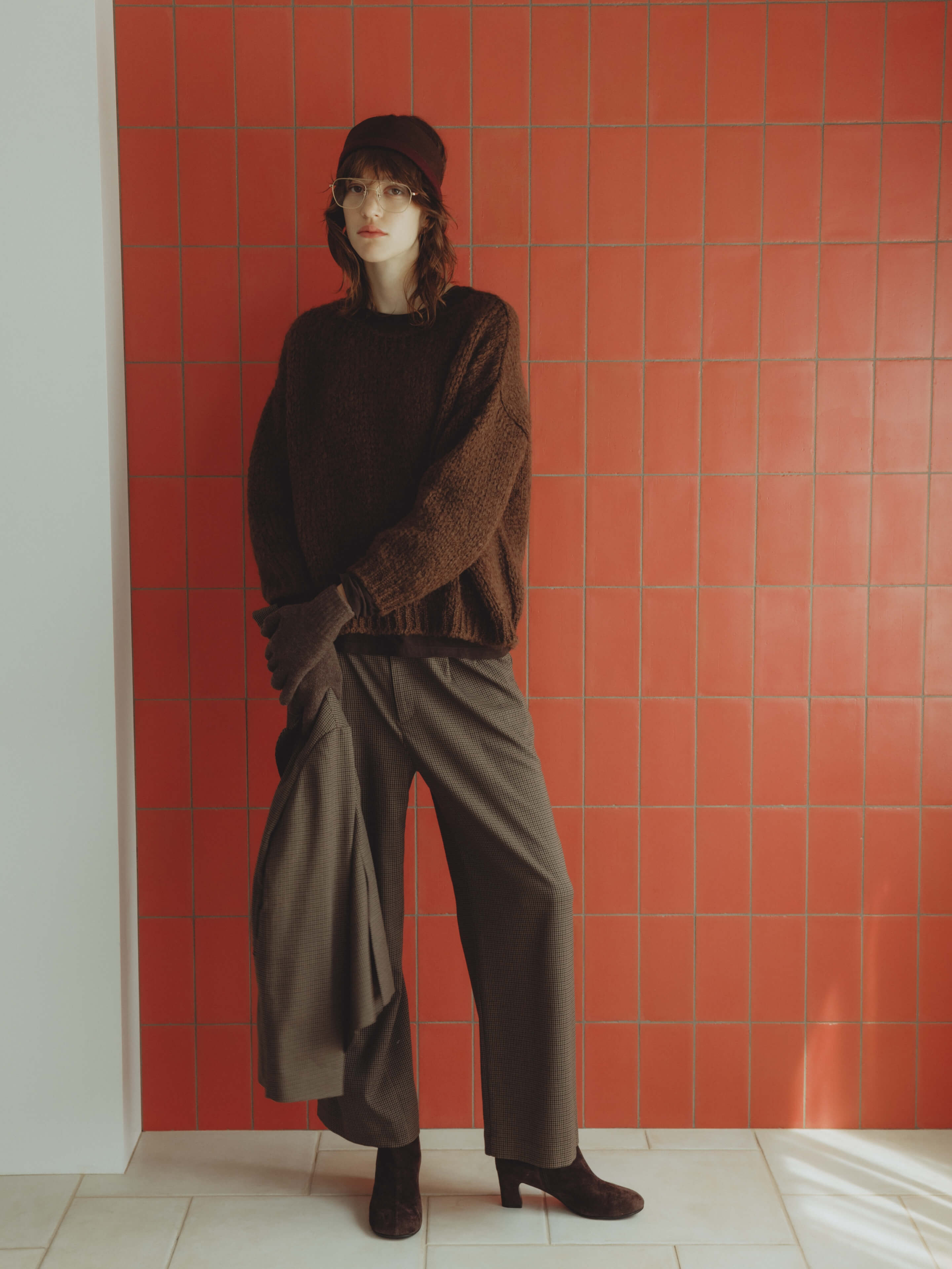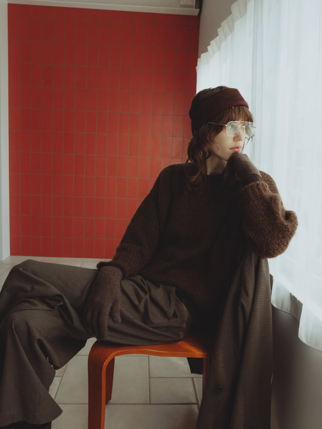 ざっくりとした編み目、オーバーサイズ、それに加えトレンドのブラウン、かわいい三拍子が揃うなら迷わずマストバイ。注目のオールブラウンコーデは、ジャケットとパンツをクールダウンするニットのバランスがこの季節ならでは。