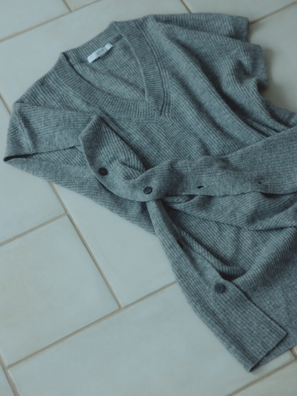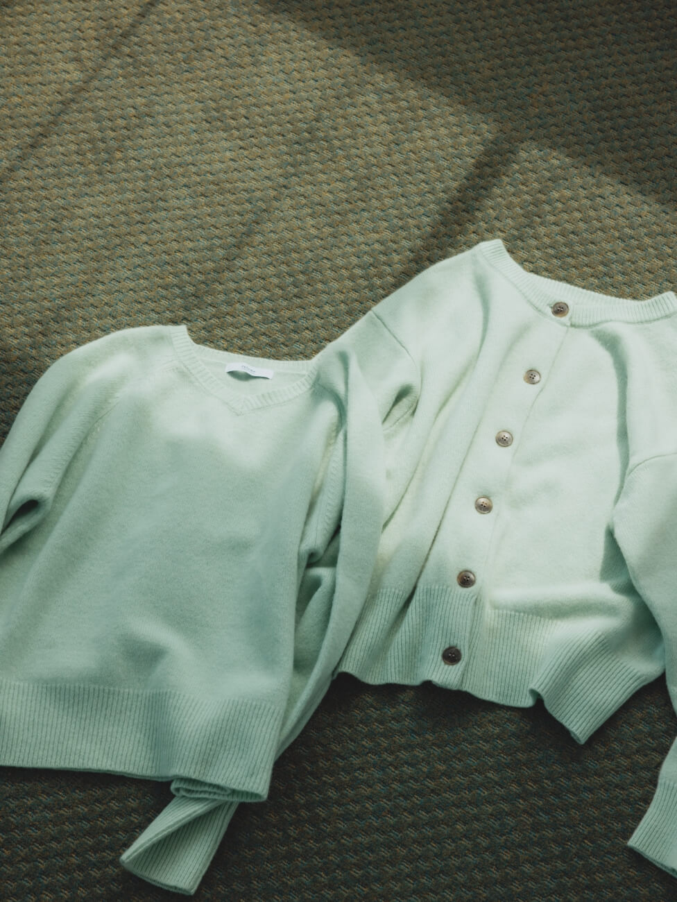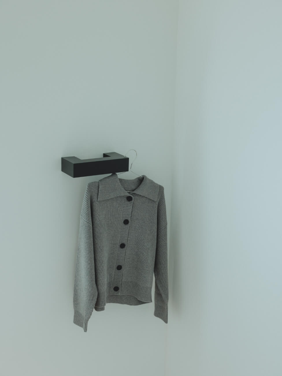 きちんと感がある襟つきカーディガンはオフィスでも活躍。