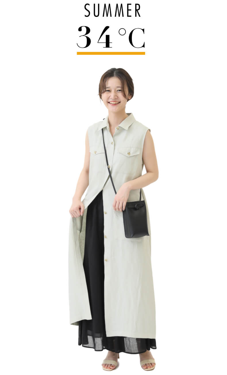 - 暑い日だっておしゃれしたい!そんな日はノースリワンピとレイヤード。肌見せで野暮ったくならないようにバランスを調節して。
