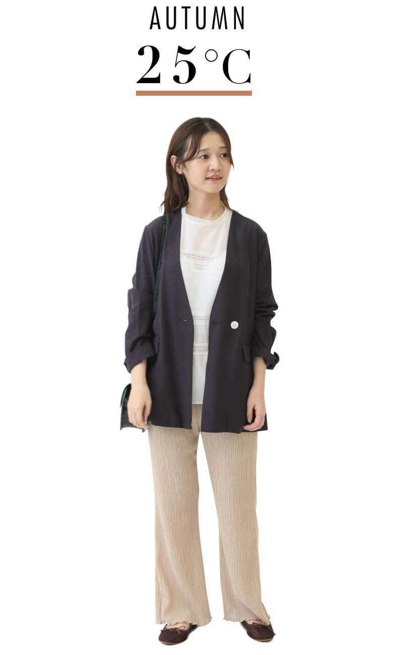 - 風が涼しくなる秋口にはパンツをレイヤード。もう少し寒くなったらタートルネックのインナー使いもいいかも。
