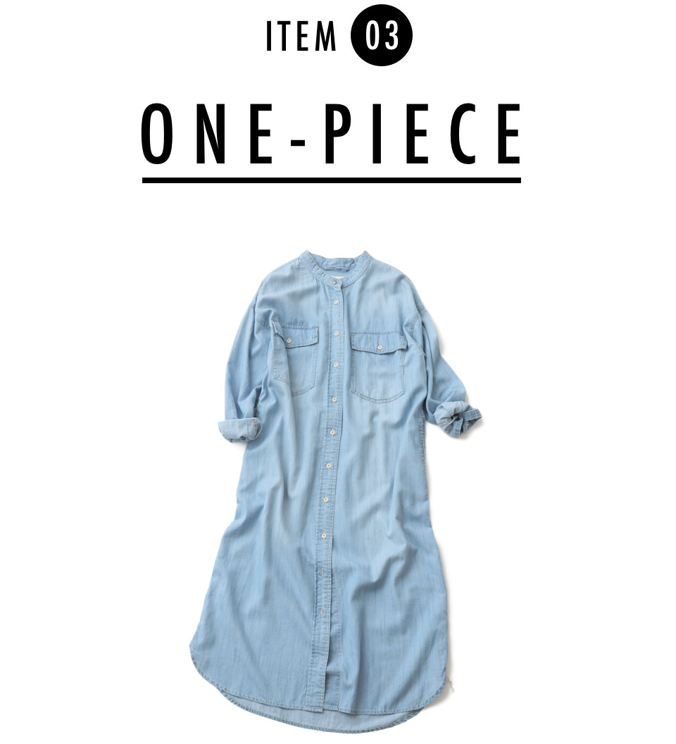 - 言わずと知れた“着回しアイテム”のシャツワンピ。