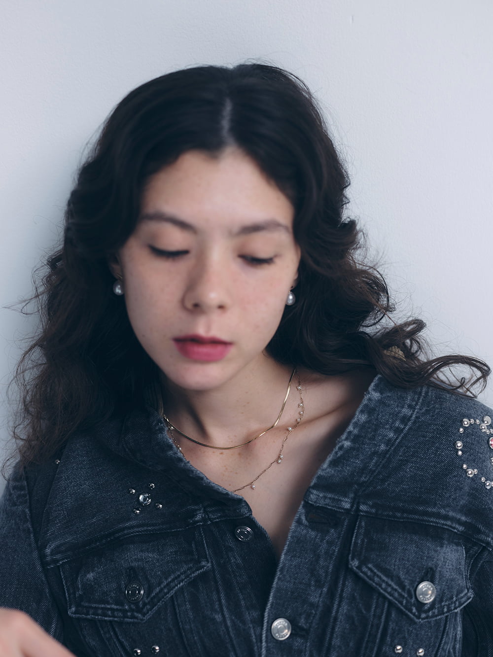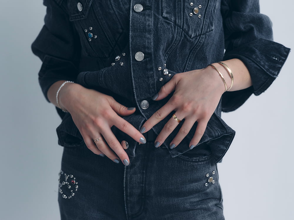 デニムのセットアップは普段もよく着るんですけど、その中でやっぱりLilasさんのジュエリーをつけるということで、