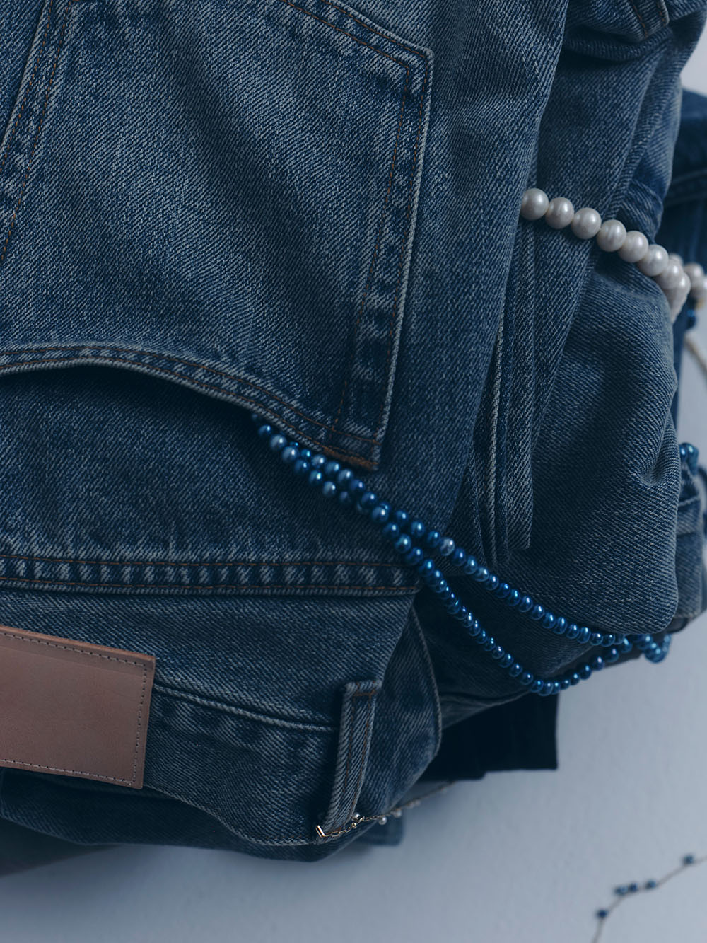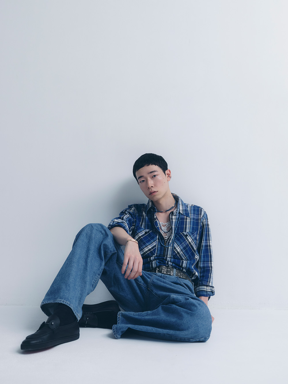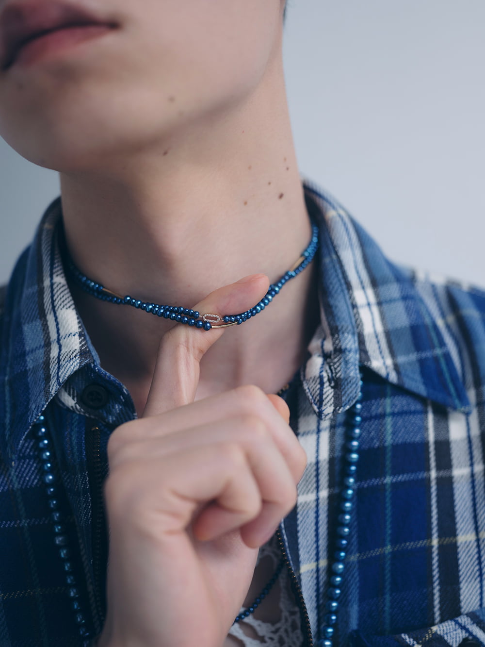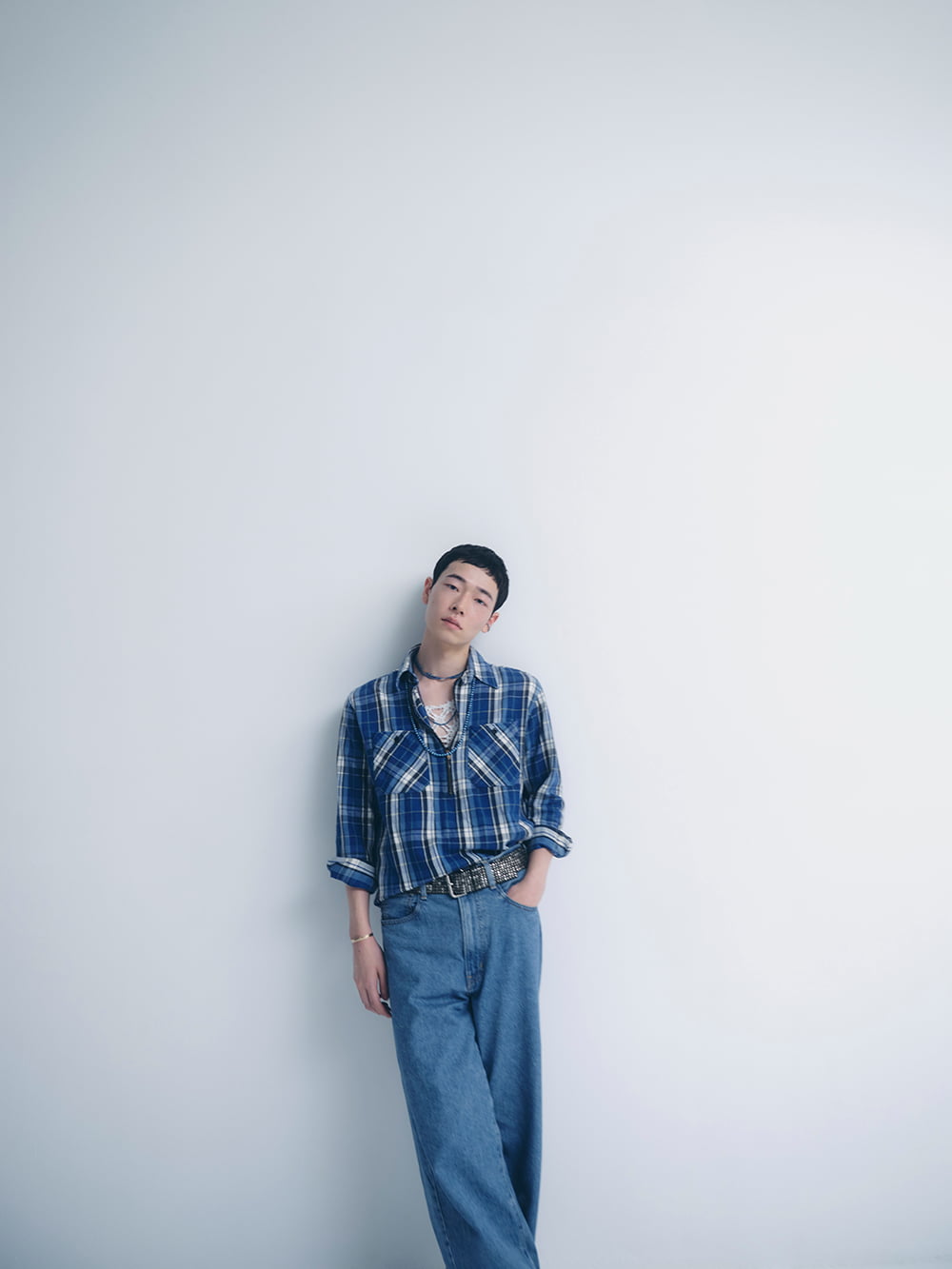 デニムを中心にコーディネートを組んで、それに合うようにチェックのシャツと、白のインナーを選びました。アクセサリーの中でネックレスが1番好きで、このインディゴは新鮮でキラキラしてすごく可愛い。