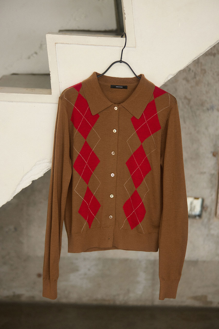 懐かしさ溢れるアーガイル柄が新鮮な今季。キャメルと赤の配色が今のムードにぴったり。
