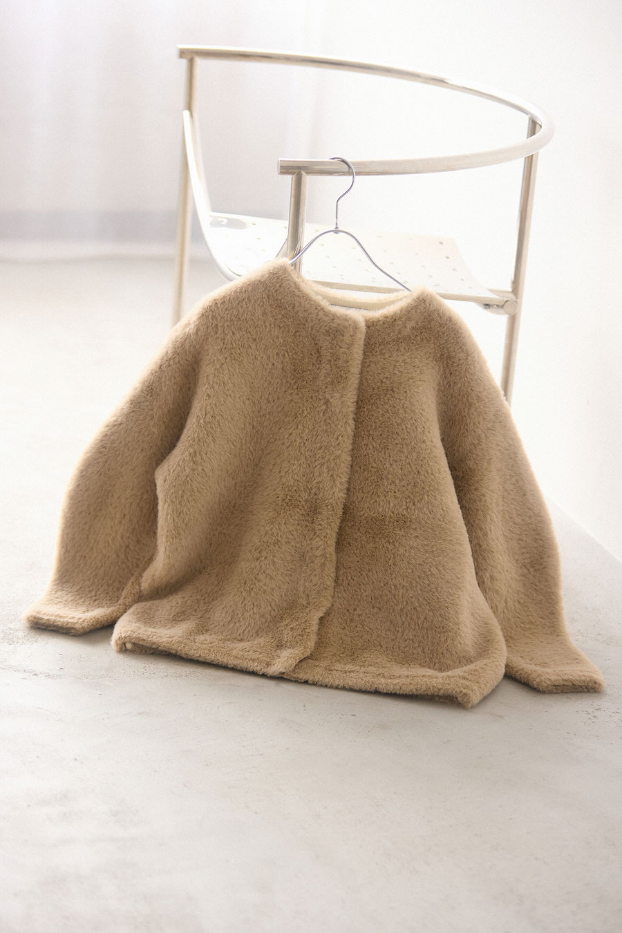 滑らかな肌触りとミニマムさがシーズン通して活躍するフェザーニットカーディガン。