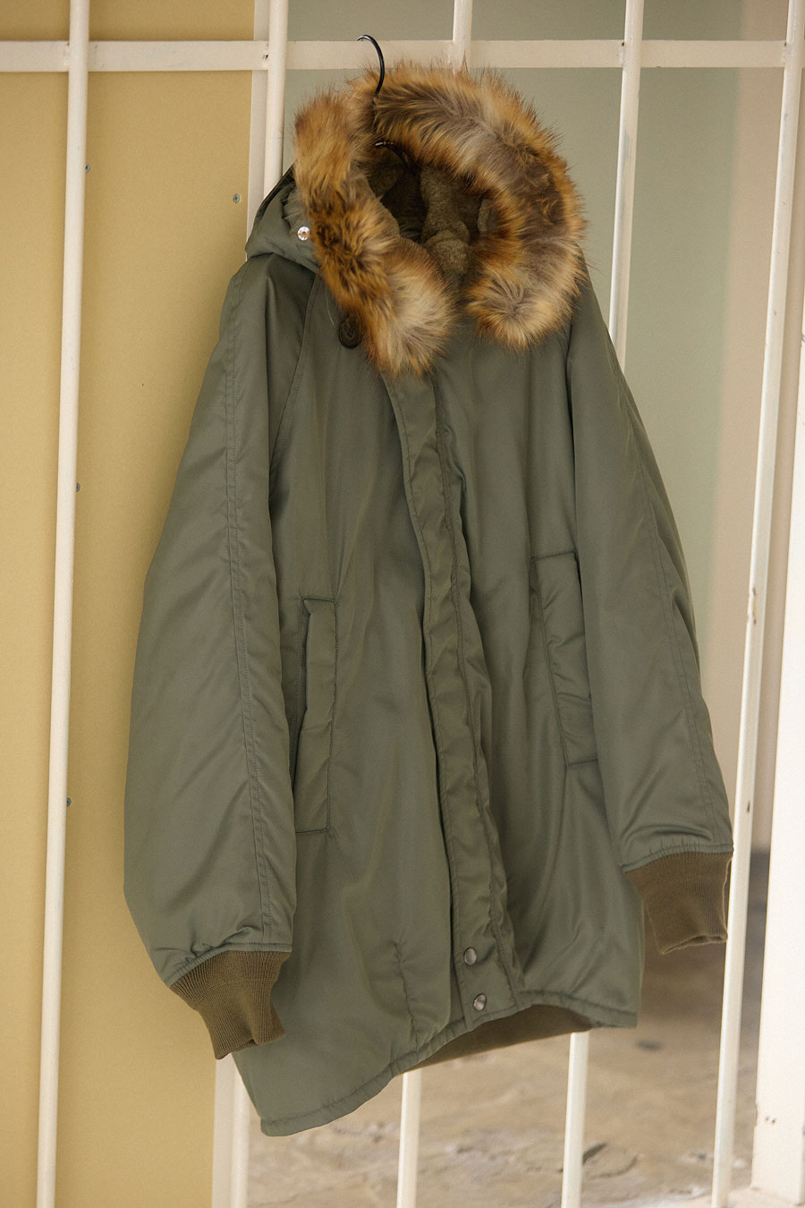 昨年人気だった<モンゴメリー>の別注ダッフル。丈が短くオーバーサイズがコーデの主役を張る。