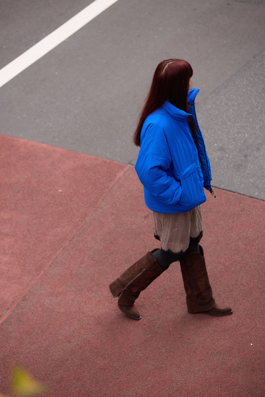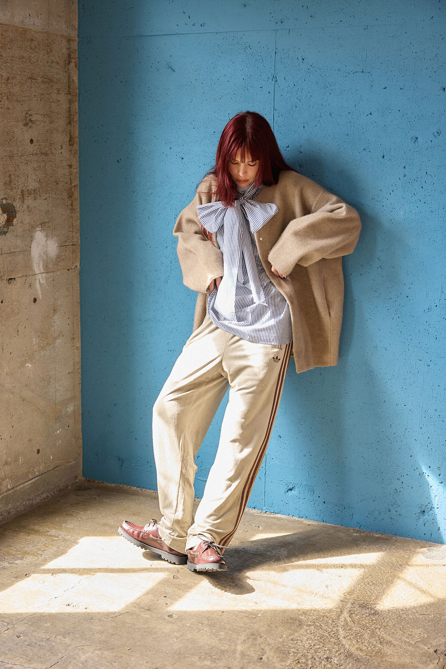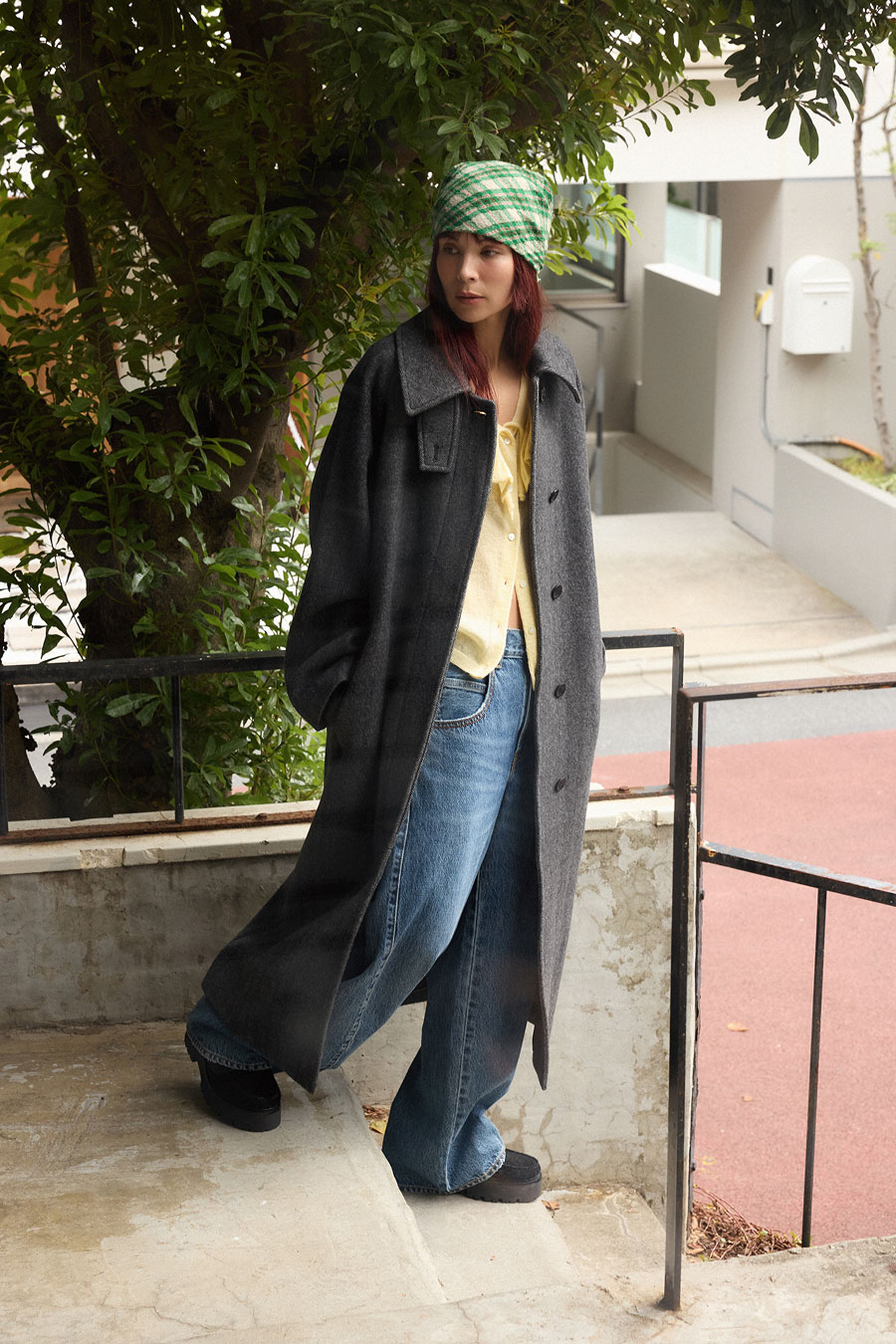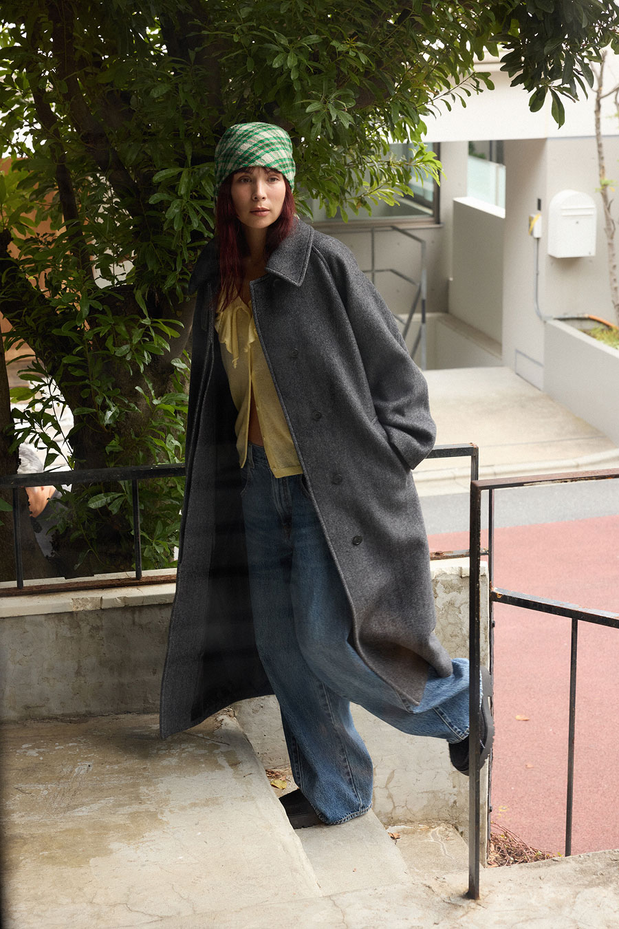 大人顔のリバーコートでメリハリを