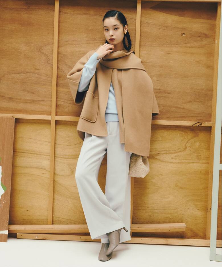 膝下丈のロングコートは、コーデ全体を優しく包み込む安心感が魅力。だからこそ、重たく見えない軽さがキーワードに。JOURNAL STANDARDのスーパー140ビーバーステンカラーコートやAP STUDIOのEssential Gown Coatがお手本。