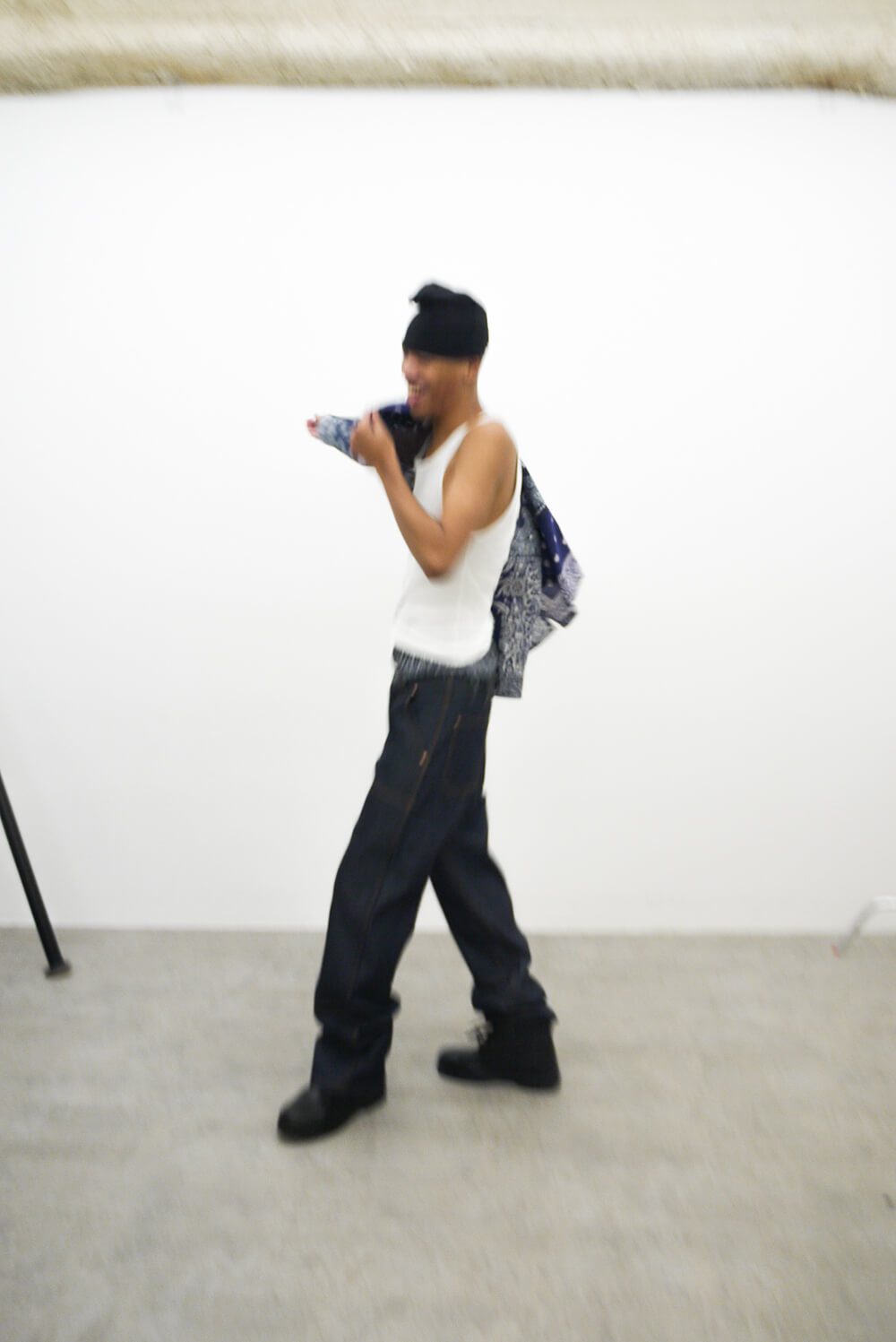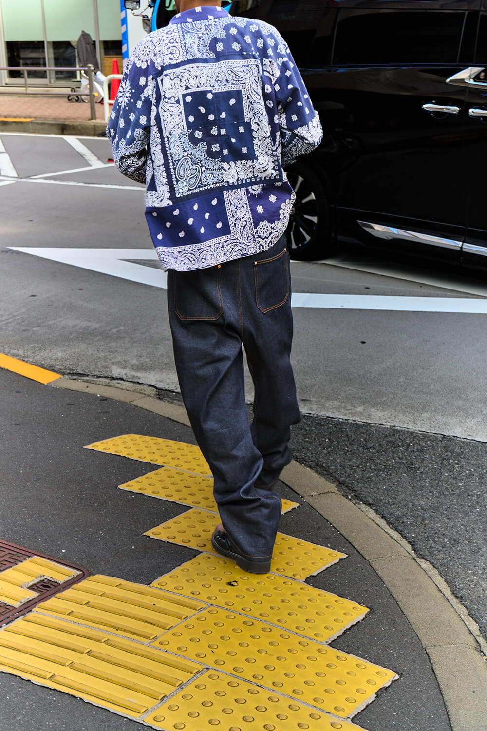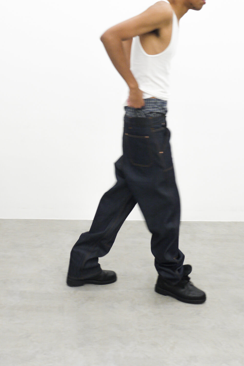 クリーンな印象のリジットデニムと、ダブルニーのデザイン感が程よくマッチしており、