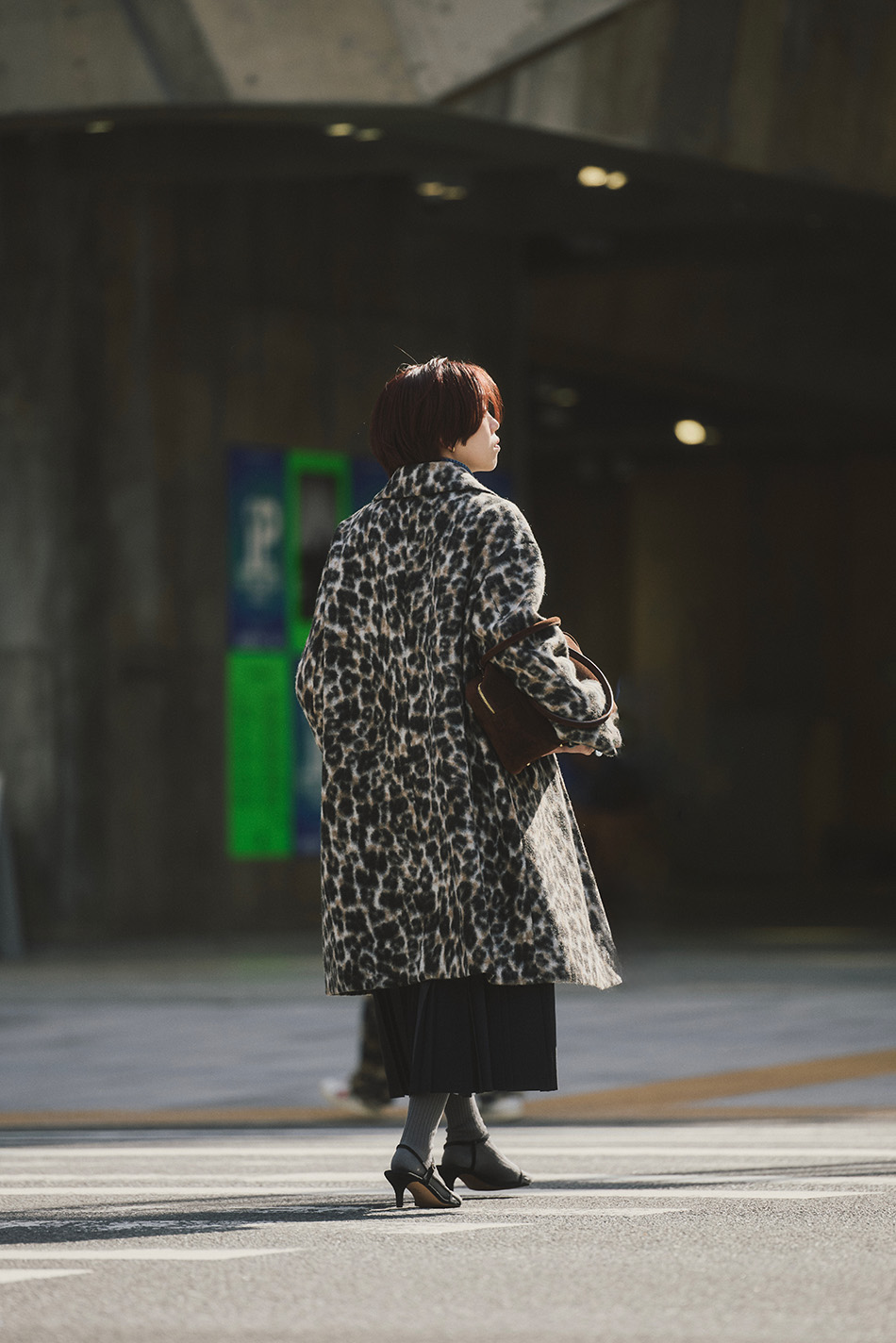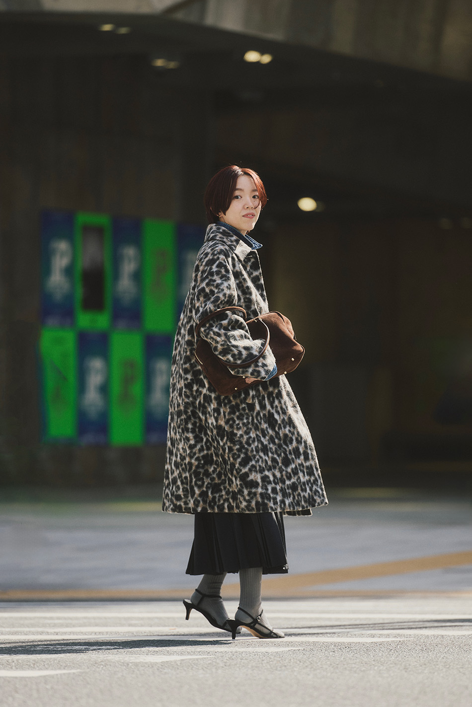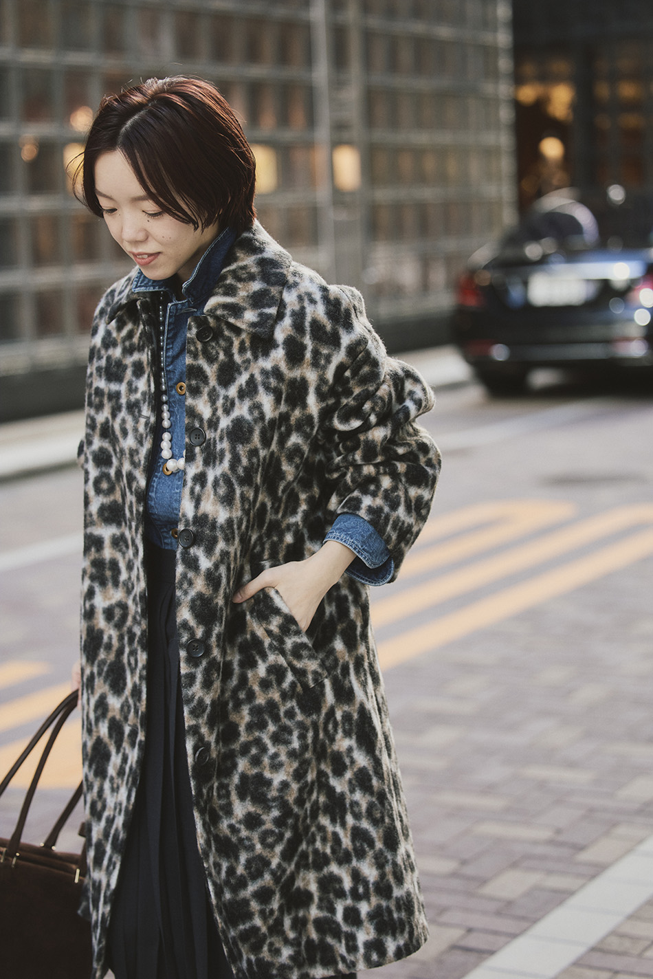 主役になるレオパードコートは寒い冬にも気映えして気分の上がる1着。今年取り入れたいデニムカバーオールとプリーツスカートで程よくカジュアルに。私らしく、カジュアルでトラッドなスタイリングにしました。重くなりがちなロングコートのスタイリングも動きのあるアイテムで軽やかな印象に。