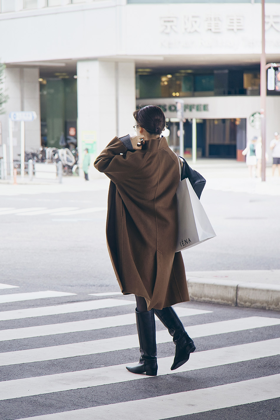 IENAの人気コートSuper160シリーズ。今年らしさもプラスしたかったのでブラウンを選びました。ショールカラーが着るだけで華やかにしてくれてとっても気分が上がります。やっぱり冬は主役アウターがあると良いですね。せっかくならと、色や柄など雰囲気の違うブラウンでコーディネートをまとめたのもお気に入りポイントです!