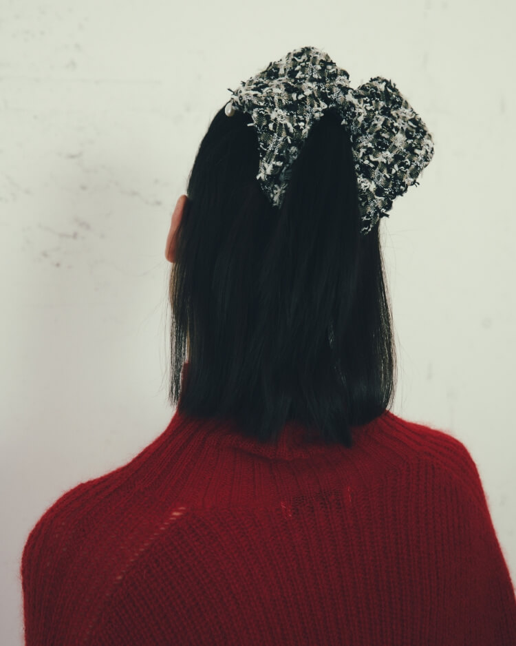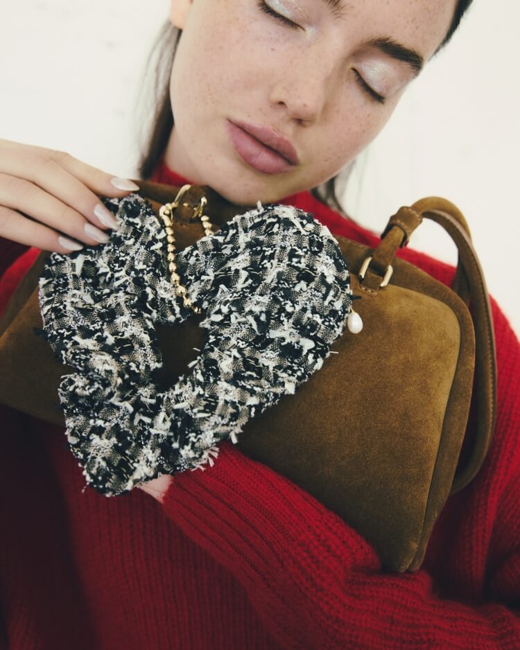 来春2026年SSは、蝶ネクタイがトレンド入りの兆しも。このシュシュですぐに来春の気分も取り入れられますよね。