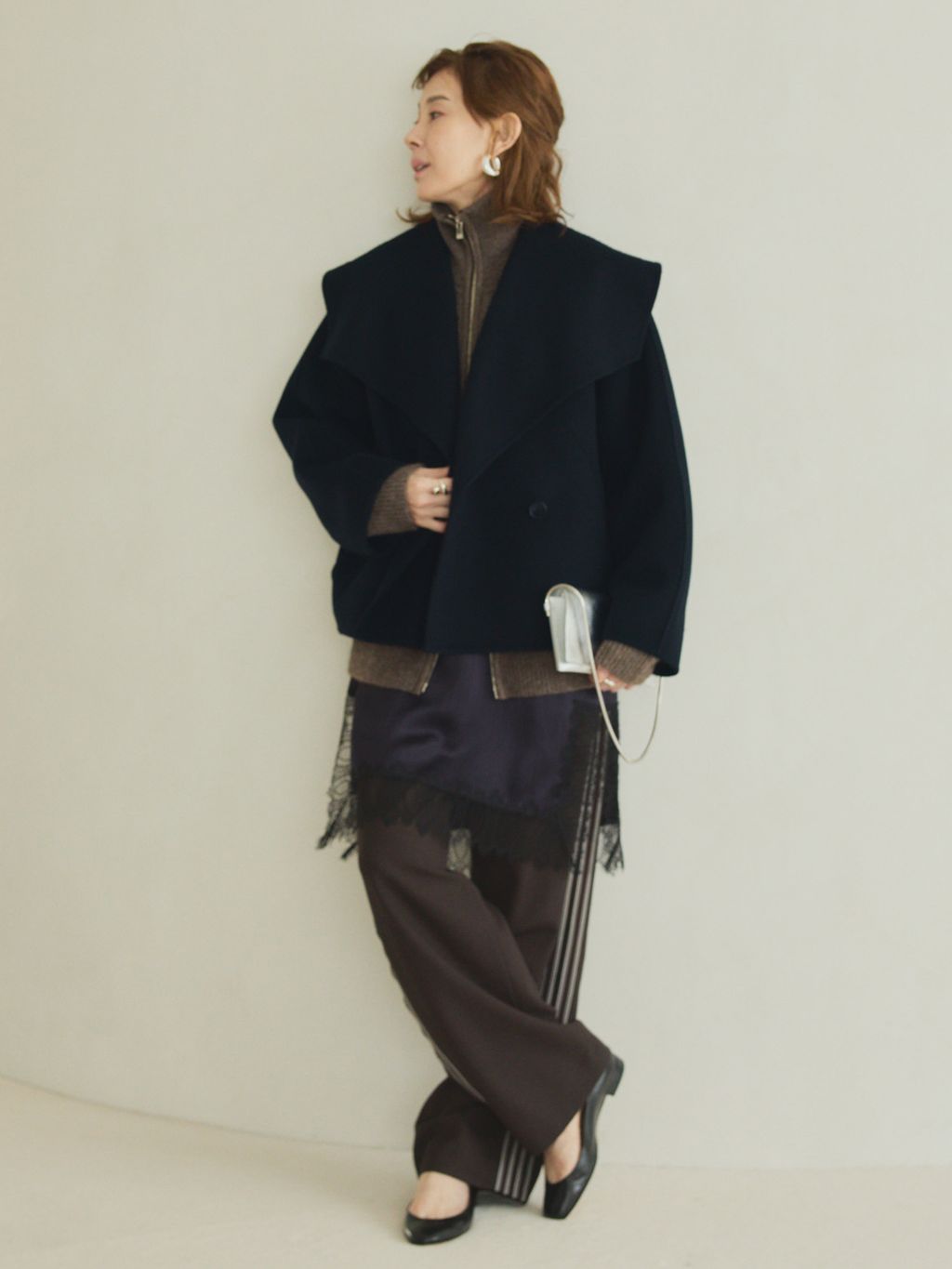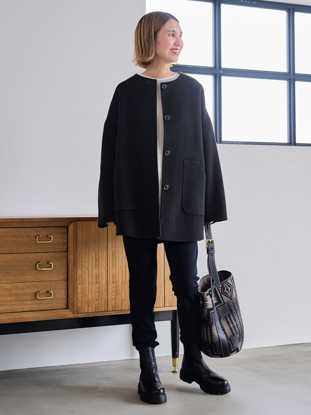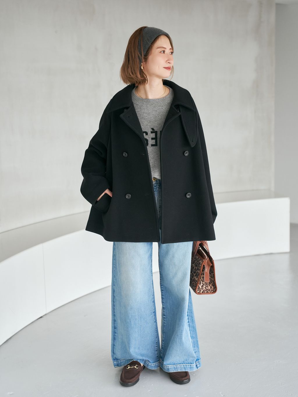 冬のレイヤードを軽やかにボリュームニットやワイドパンツとも好相性なショート丈のウールコート。動きやすさと抜け感を両立できるので、サッと着るにもお出かけにも大活躍。