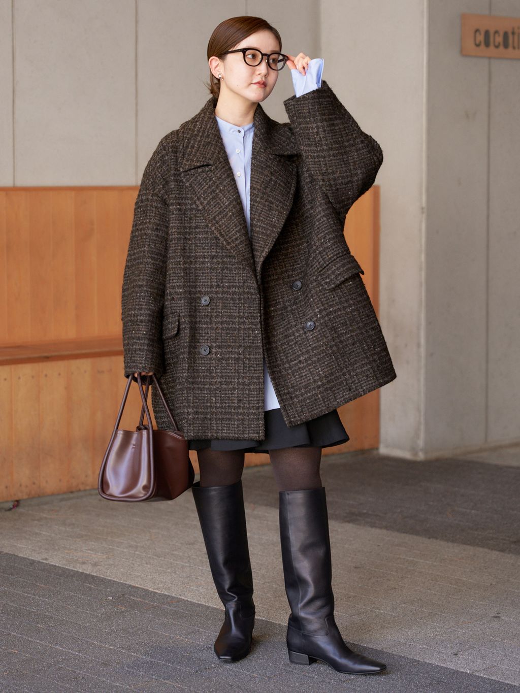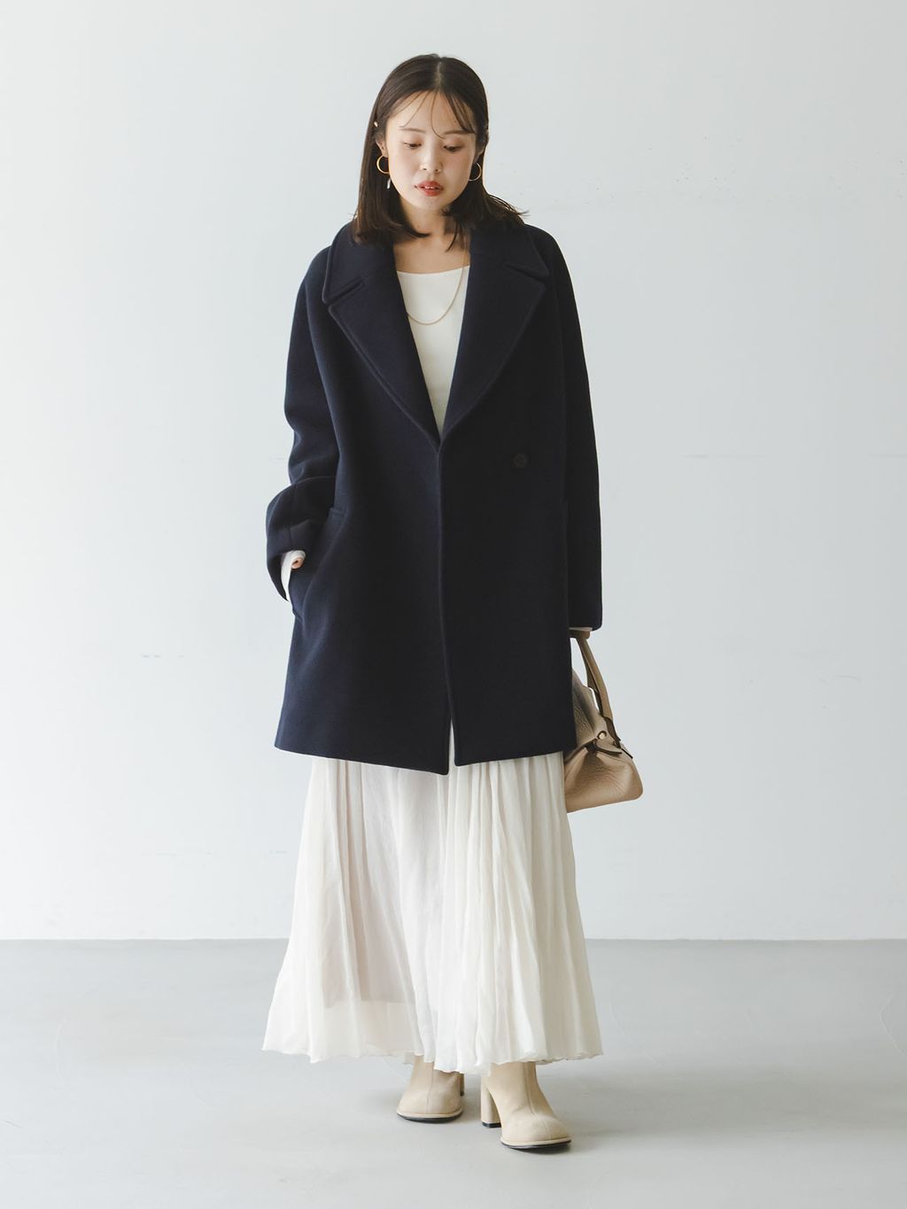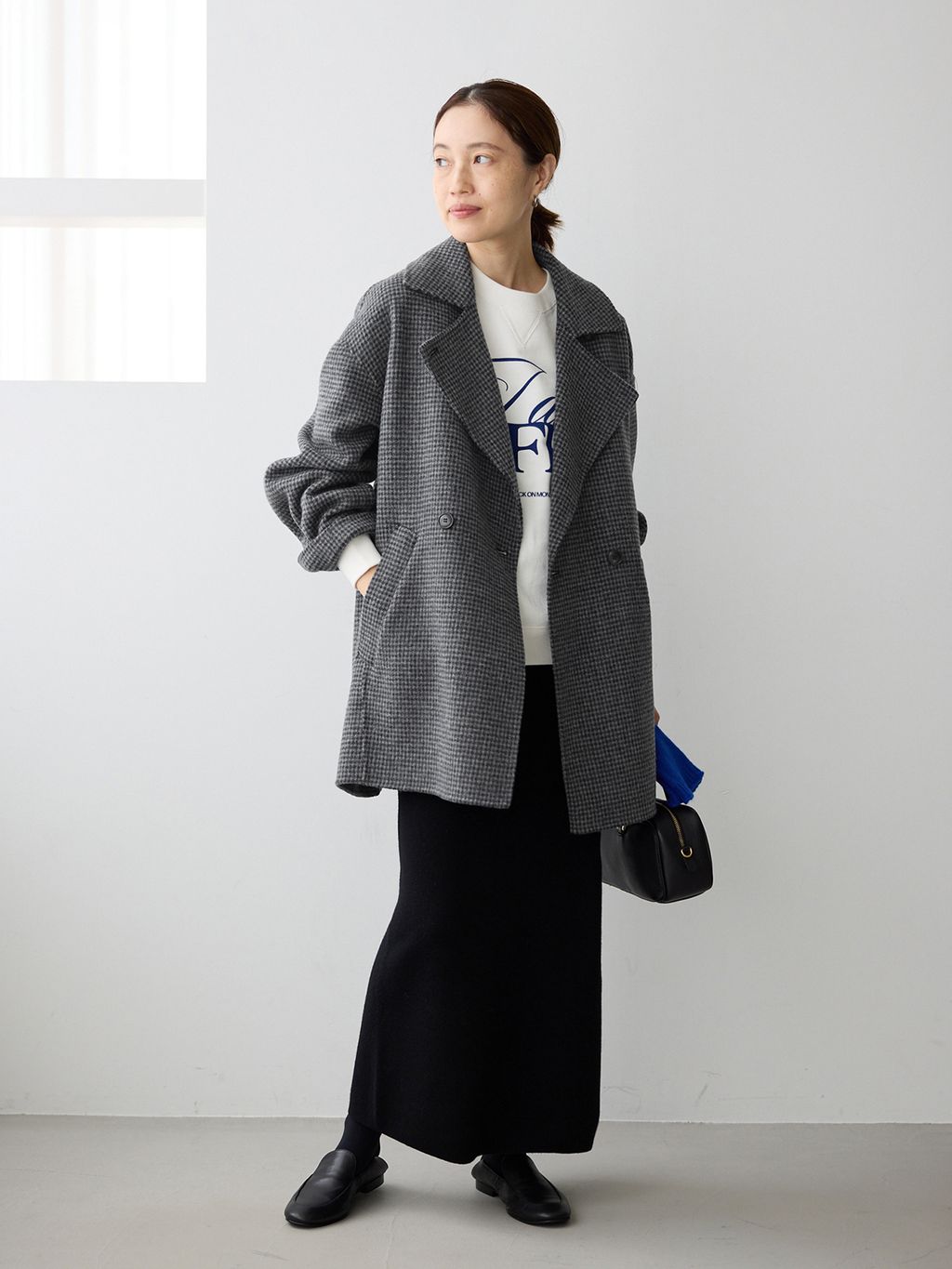 冬のレイヤードを軽やかにボリュームニットやワイドパンツとも好相性なショート丈のウールコート。動きやすさと抜け感を両立できるので、サッと着るにもお出かけにも大活躍。