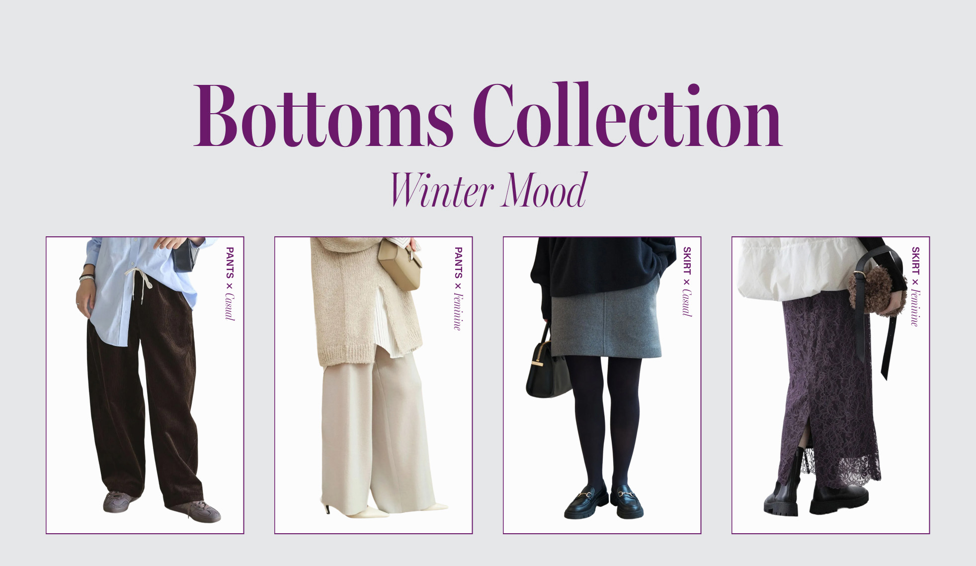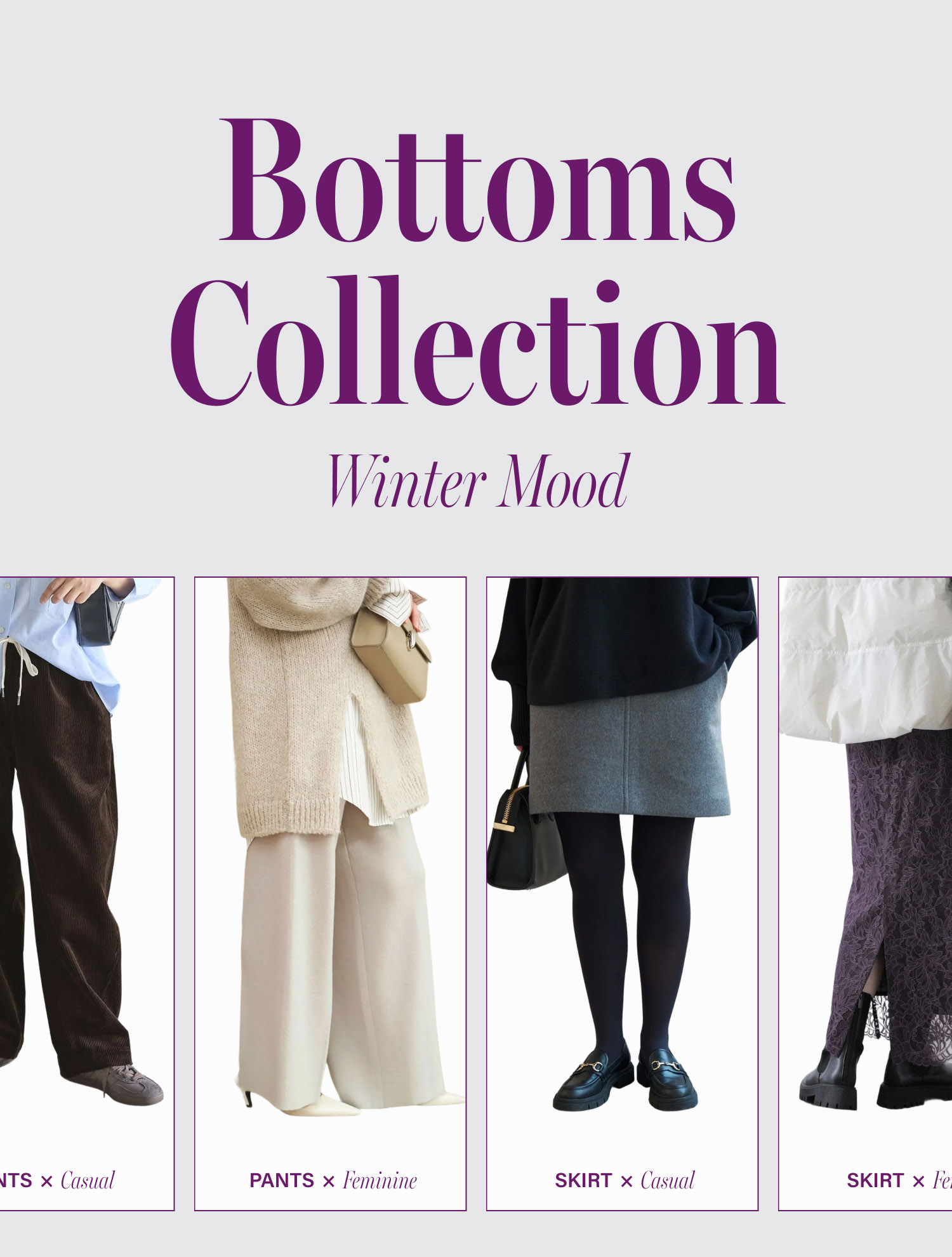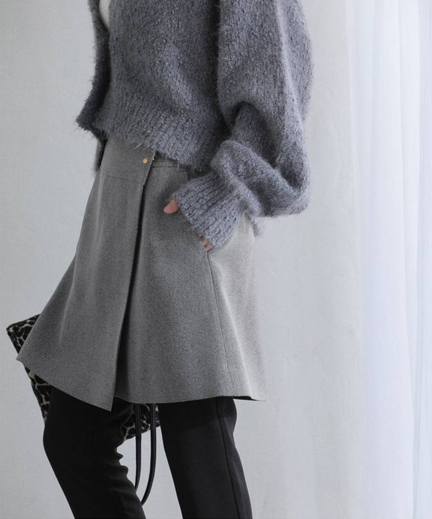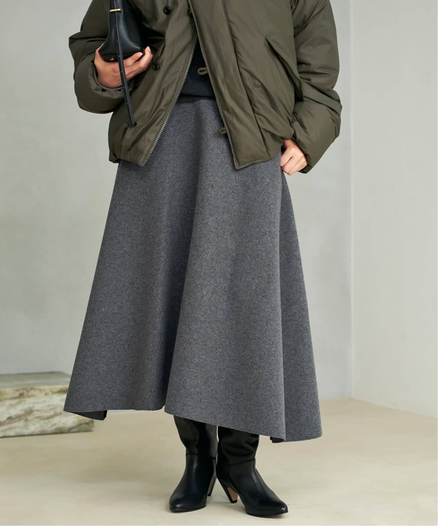 冬のフェミニンスカート起毛感や柔らかなドレープが女性らしさを引き立てる一枚。ニットやショートブーツと合わせて、季節感たっぷりのフェミニンな着こなしに。