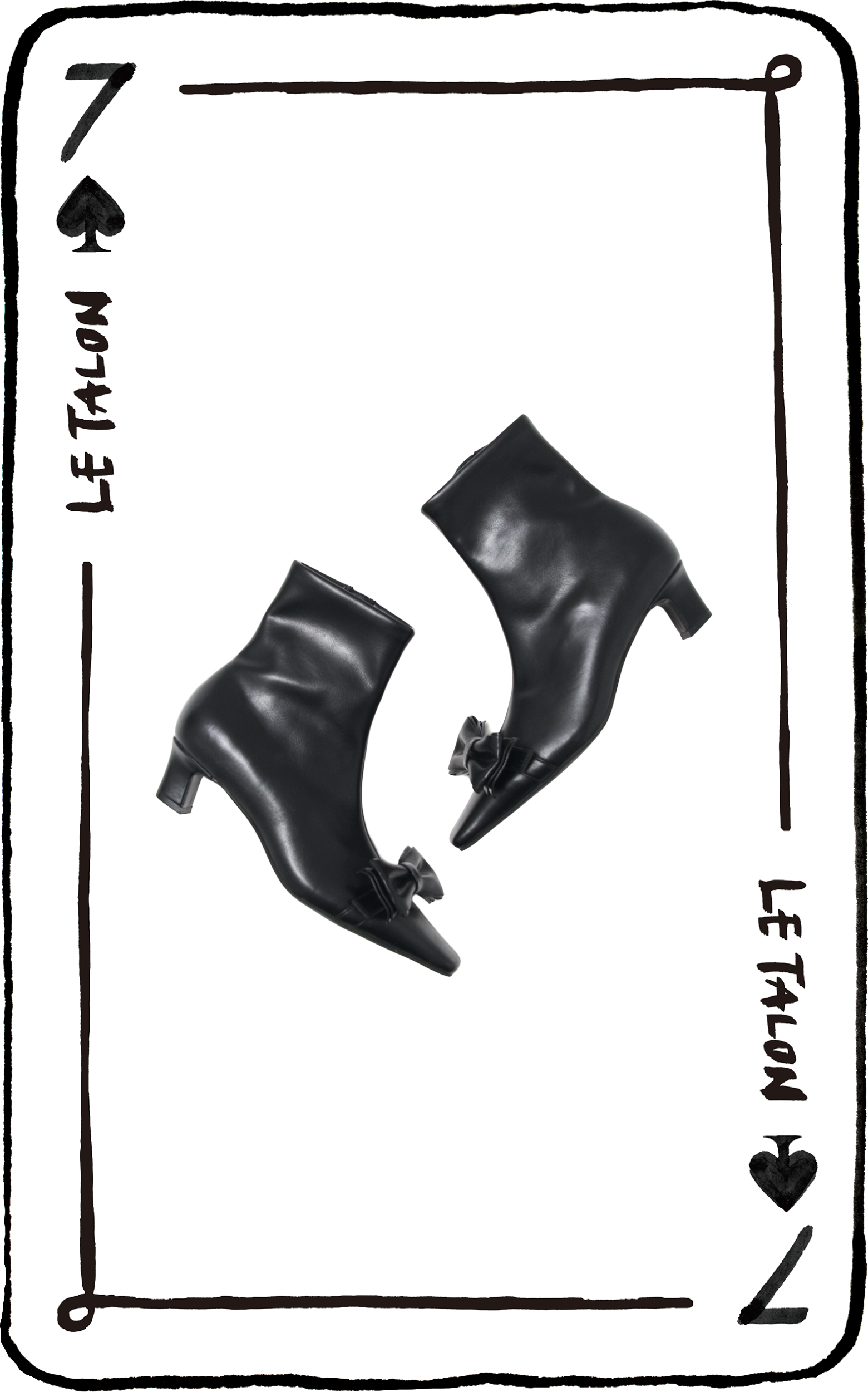 ヨンアさんとのコラボで誕生したブーツは、冬のスタイルを一段と洗練させる一足。足元を美しく魅せる計算されたフォルムに、気分で表情を変えられる取り外し可能なリボンがアクセント。