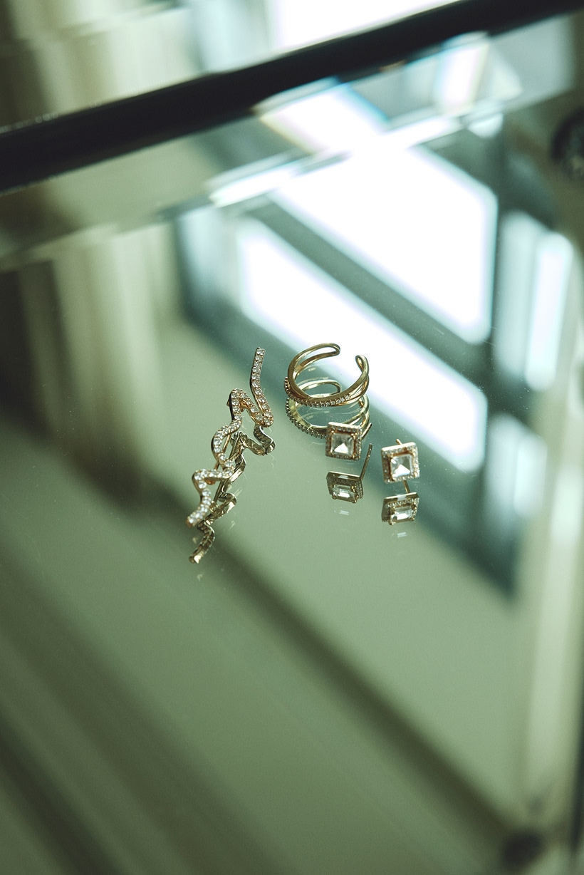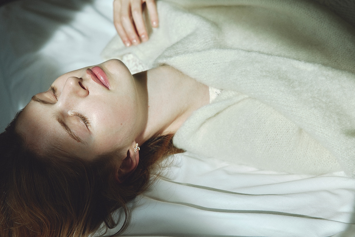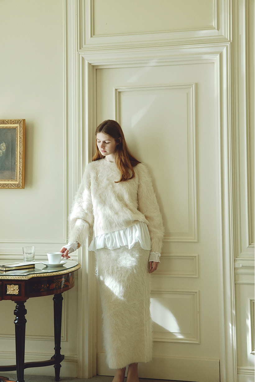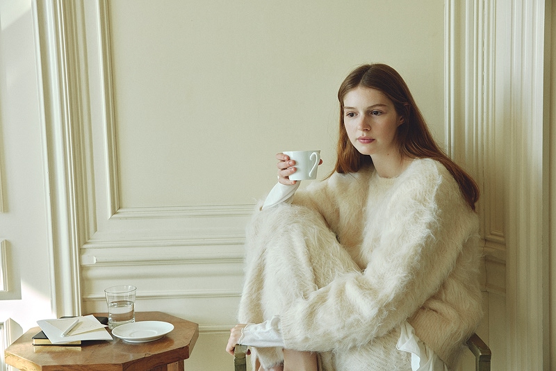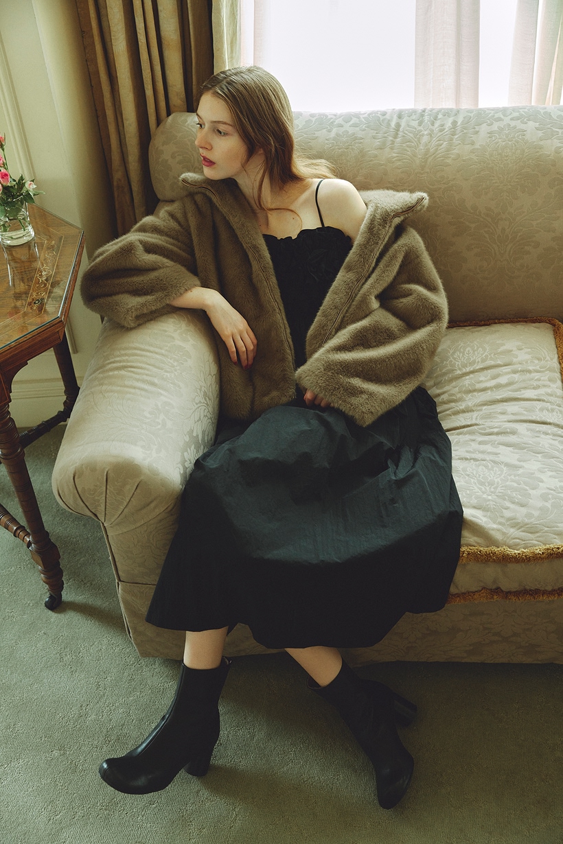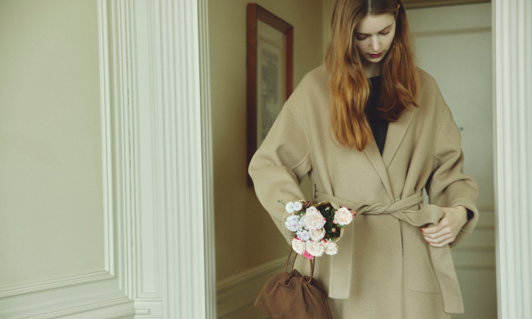 食事会やパーティーなど、特別な日の装いにも。冬の街に咲く“彫刻のような花”を纏って。