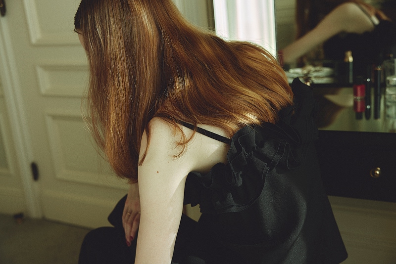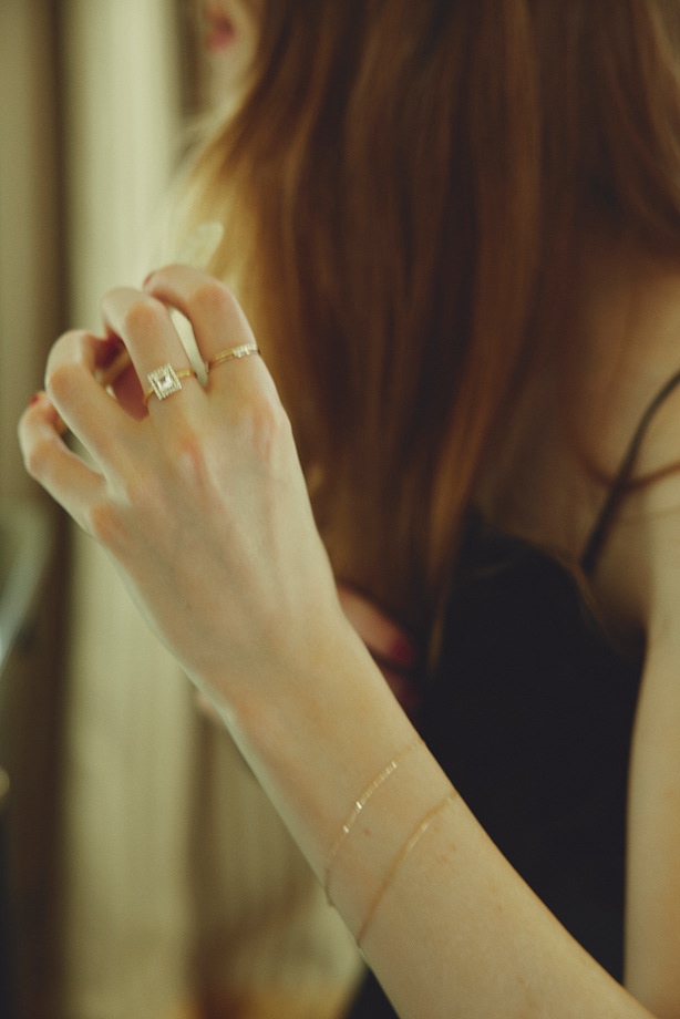 光を受けて表情を変えるフリルやサテン、ビーズのきらめきが、華やかなシーンをさりげなく彩る。