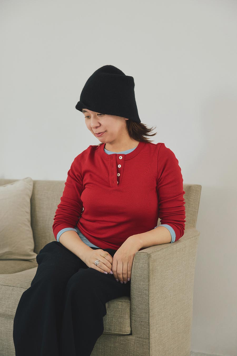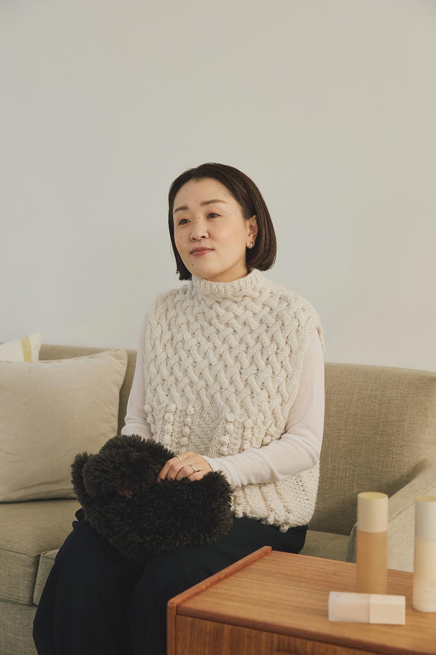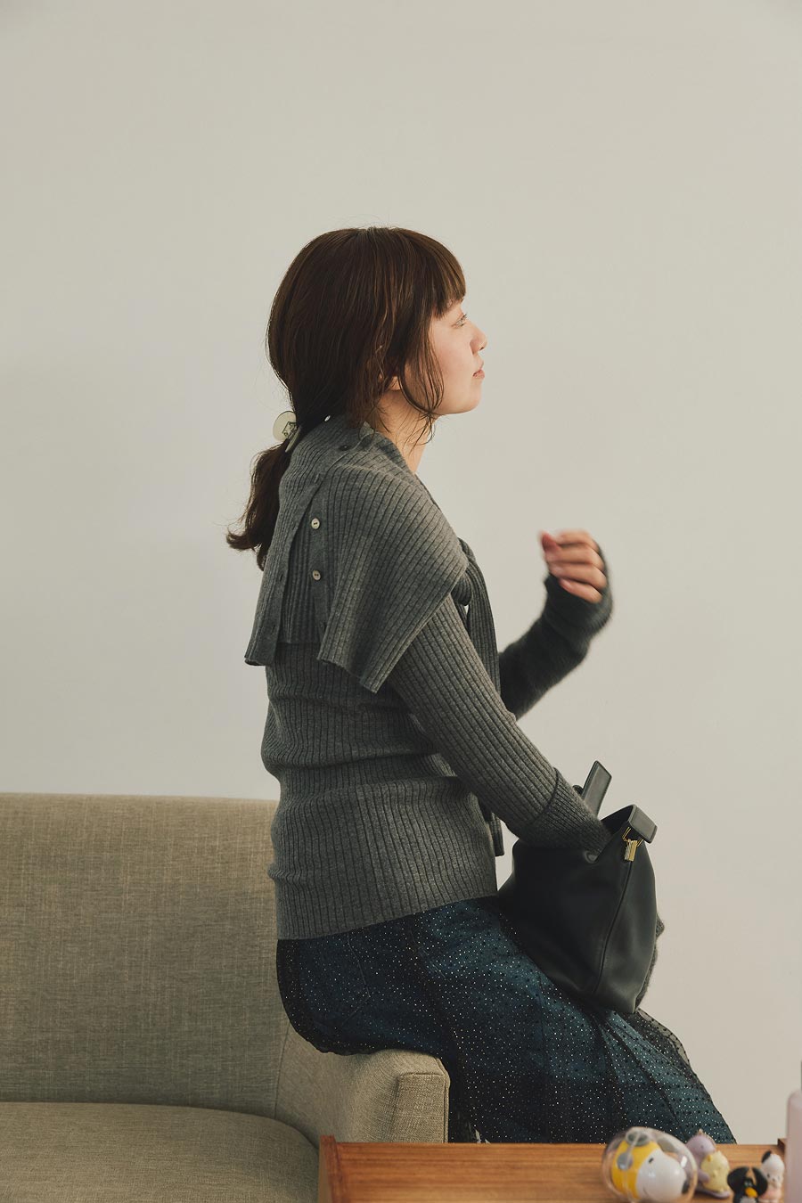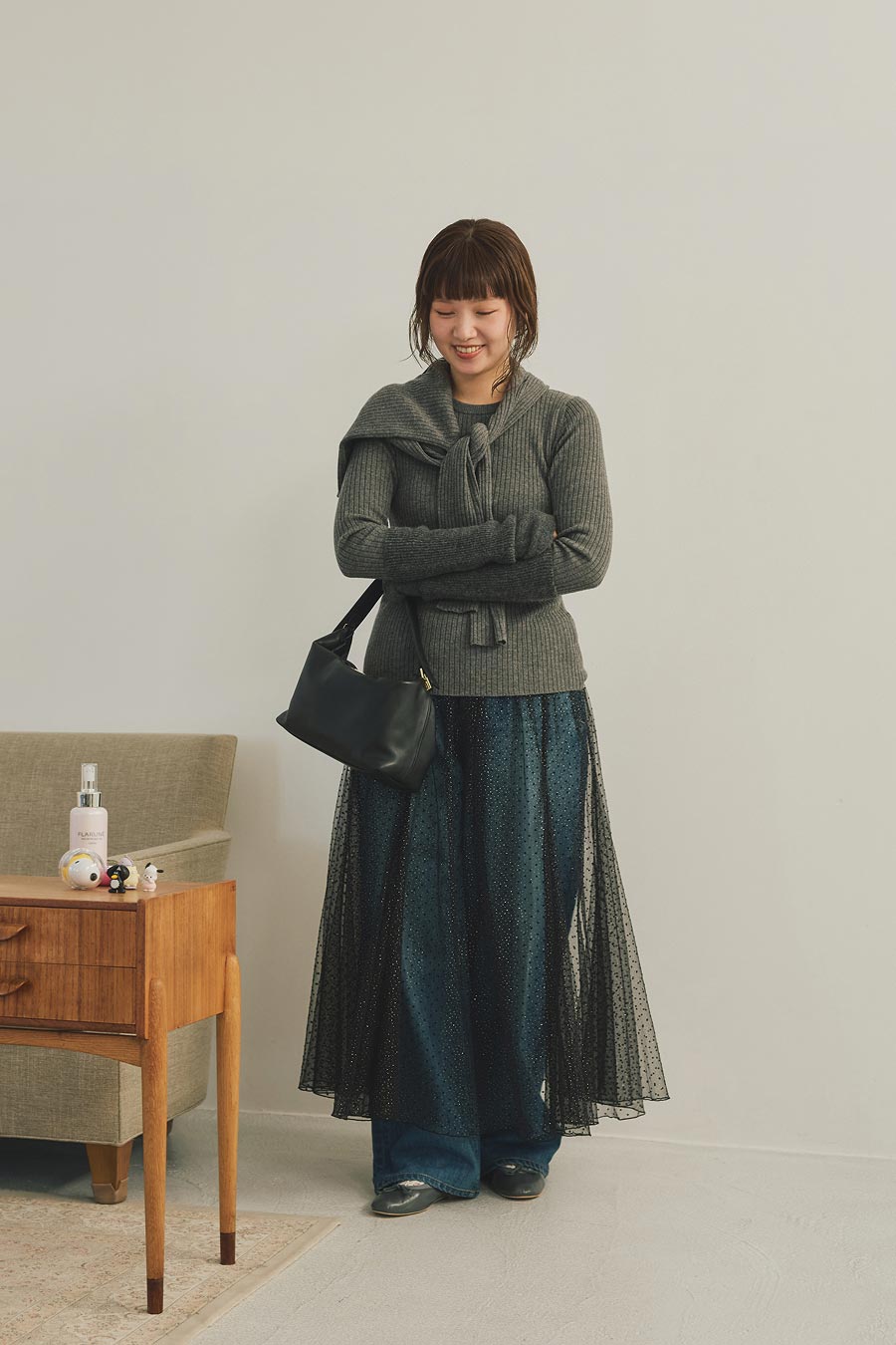 「とにかく柔らかい肌触りで毎日のワードローブに手放せない存在です。あとはボタンの“IÉNA”刻印。細かい部分なのですが、だからこそ感じる“こだわり“が気に入っています。実は去年もリアルバイしていて、あまりに良いので今年も新色を買い足ししました。」
