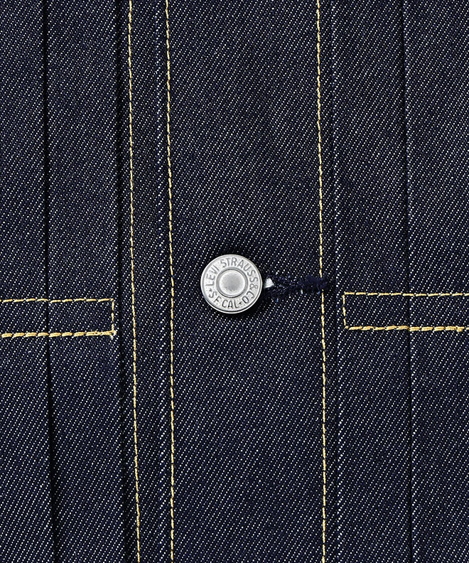 1940〜50年代のワークジャケットに見られる、大戦期のディテールを基に構成したリジットモデル。フラップを省いたフロントやボタン位置の設定、ステッチのずらしなど、実在する仕様を参照しながら、現代的なバランスへと再構築しています。5ボタン仕様を採用し、2XL以上のサイズには当時のパターンを踏襲した“Tバック仕様”を採用。ヴィンテージの背景を丁寧に落とし込みながら、今のスタイルに馴染む一着に仕上げました。