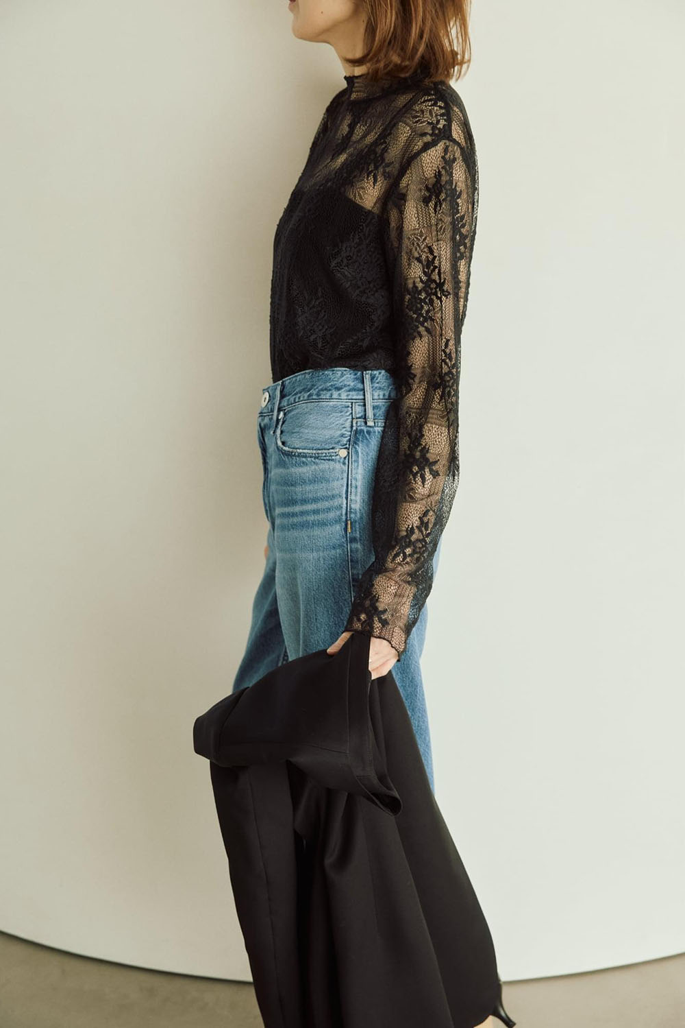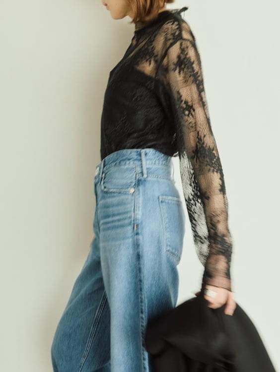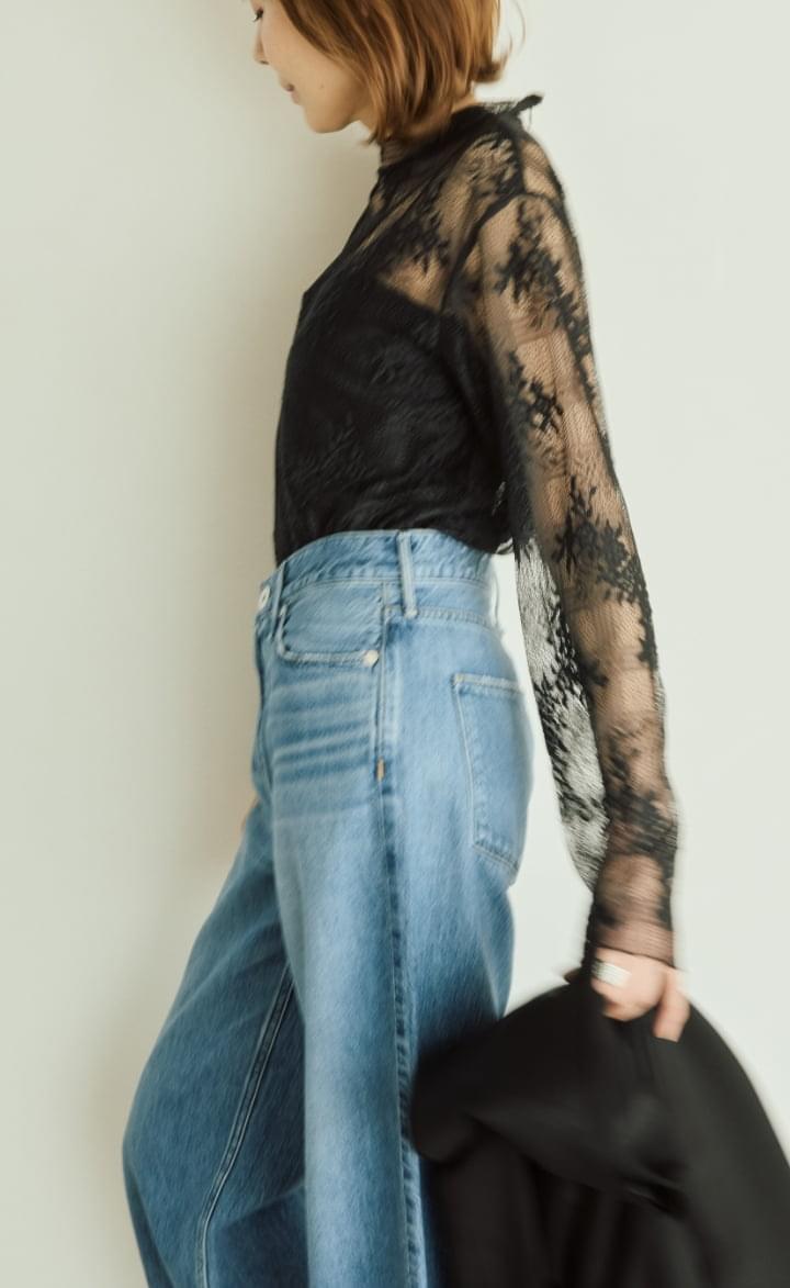 繊細なレース素材を使用した、レイヤードにも重宝する、今シーズントレンドのブラウス。 様々なトップスやボトムコーデの主役やわき役になるインナーブラウスです。