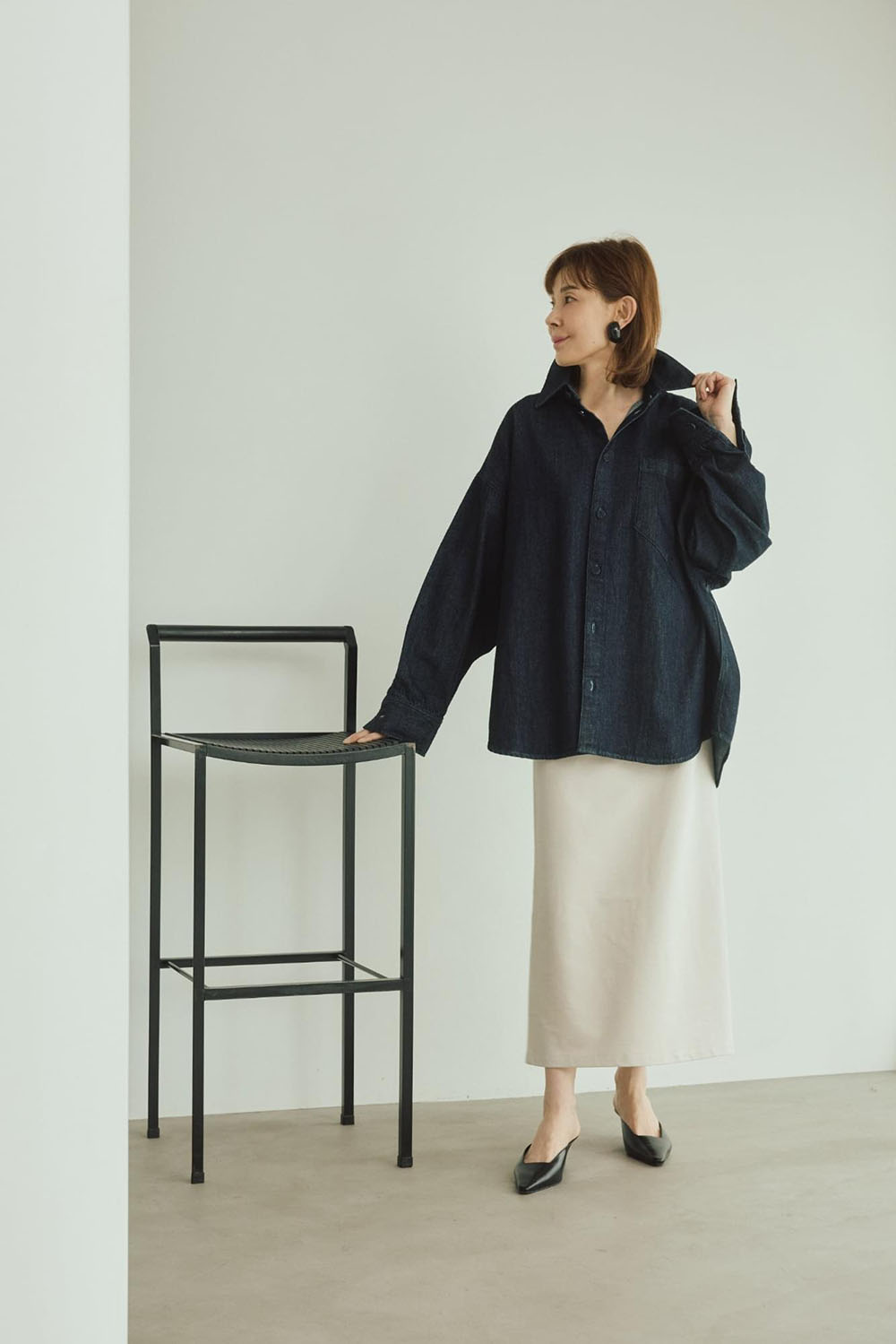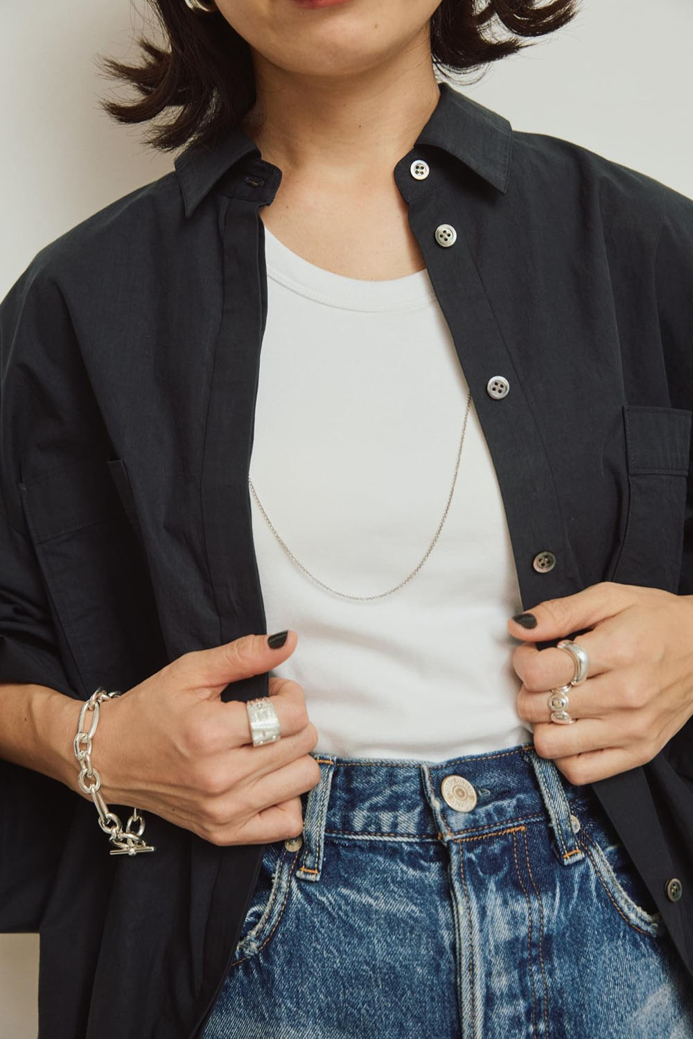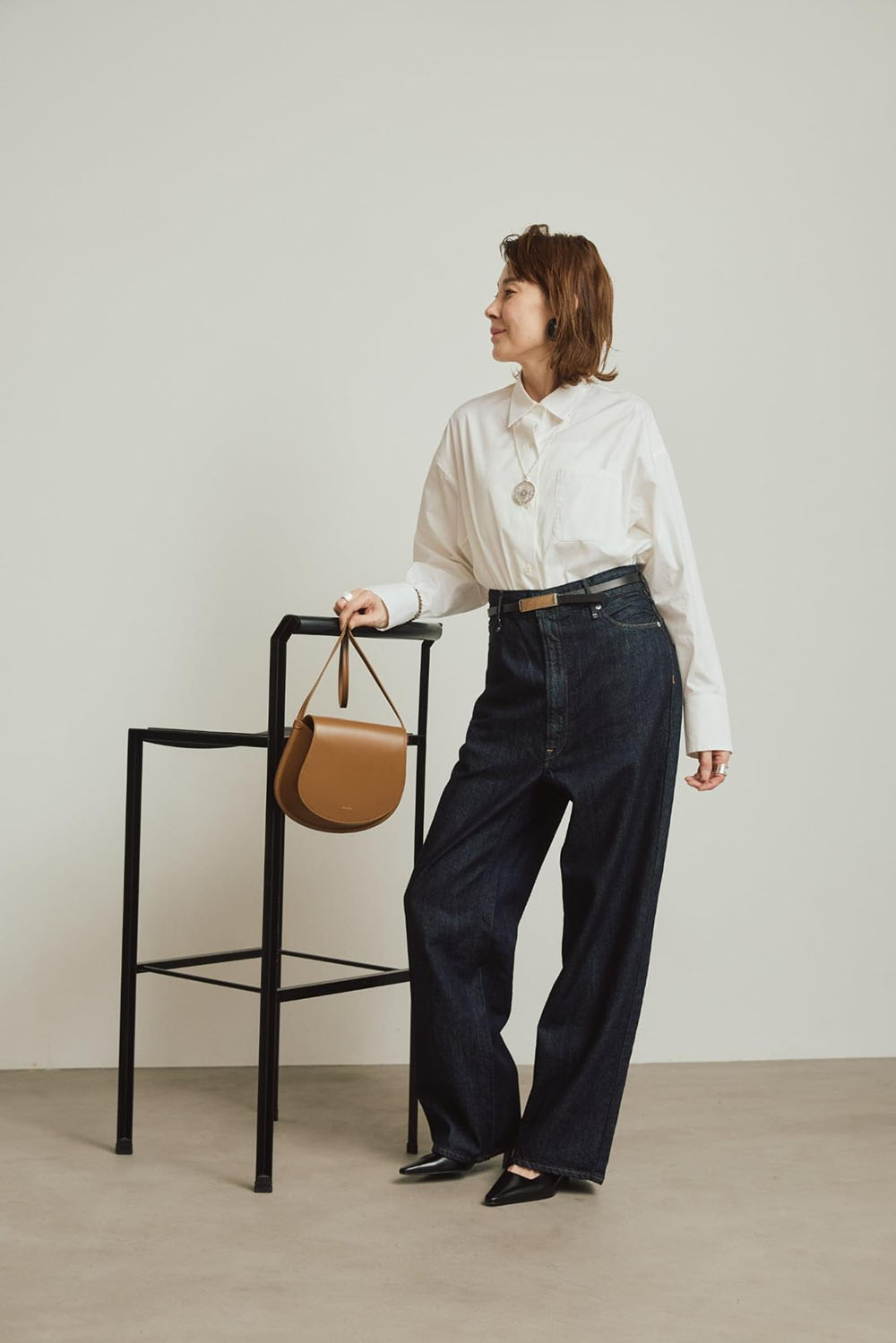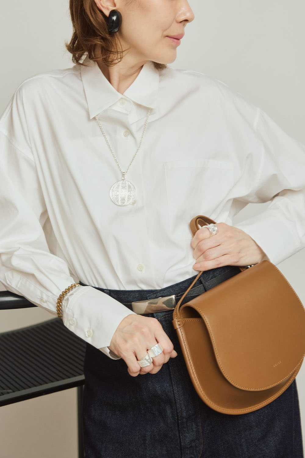 しなやかなコットン素材で仕立てた、ベーシックながら計算されたシルエットの新レギュラーシャツ。 真っ白なレギュラーシャツは1枚新調していたいもの。肩まわりにゆとりを持たせたパターンが、自然な抜け感を出してくれます。 真っ白な白シャツは、釦を上までしっかり留めてノンウォッシュデニムと。クリーンで清潔感あるスタイリングに トゥアレグ族にリスペクトを込めて立ち上げたブランドADRAR(アドラル)のシルバーアクセが映えます。
