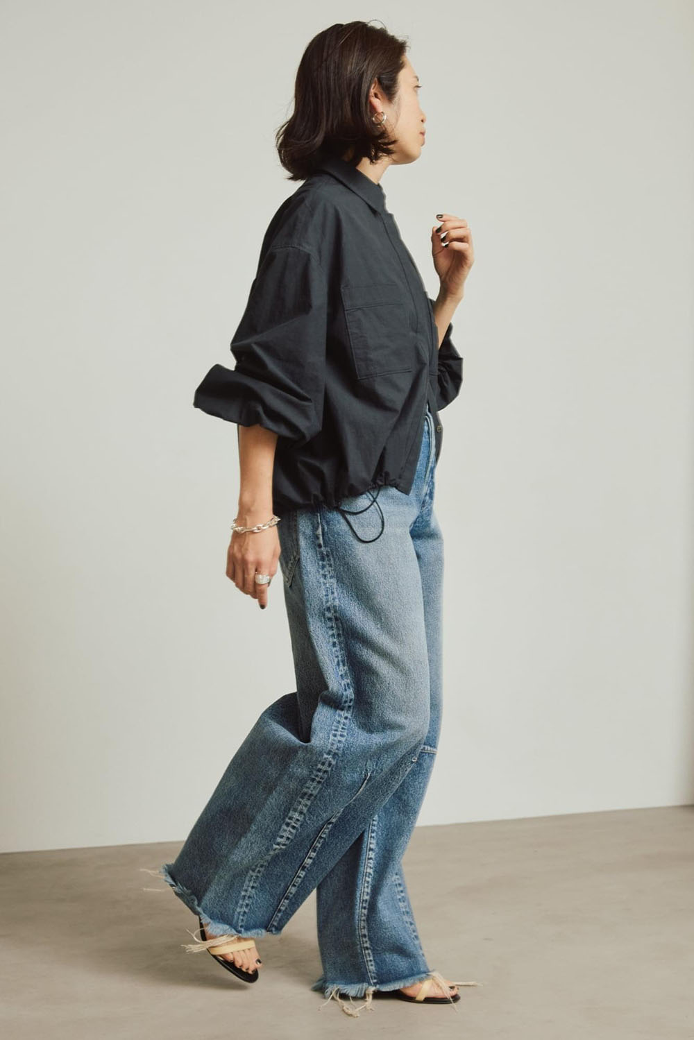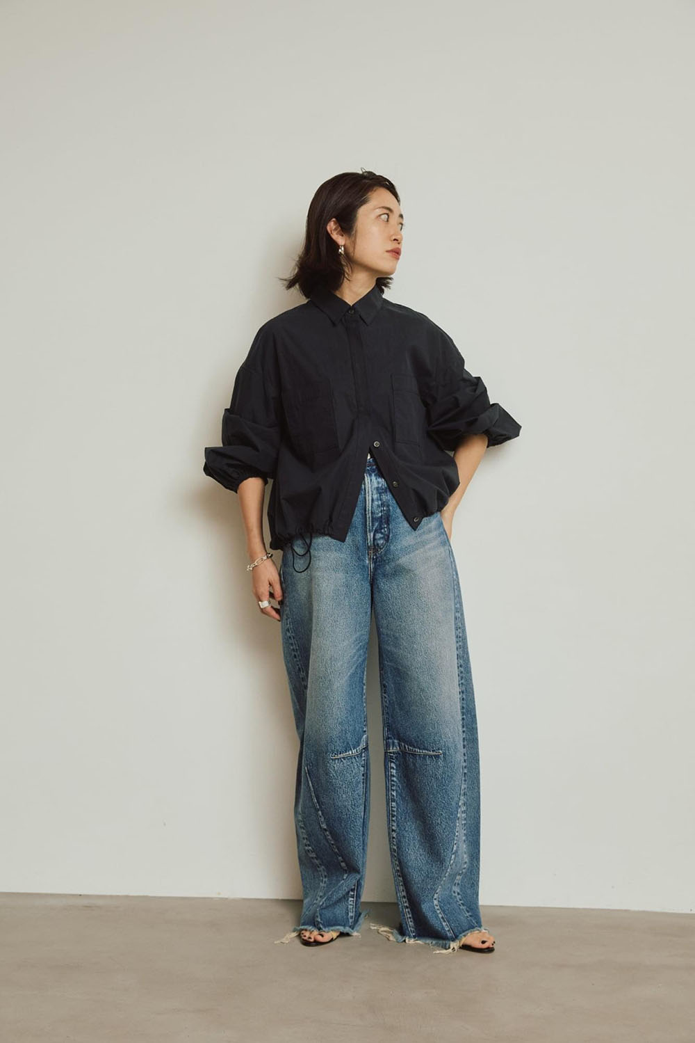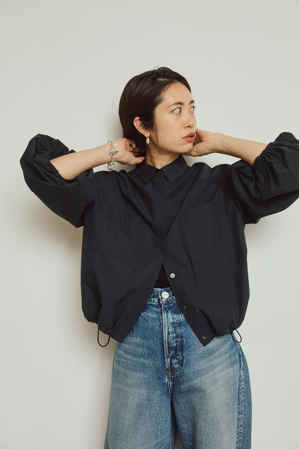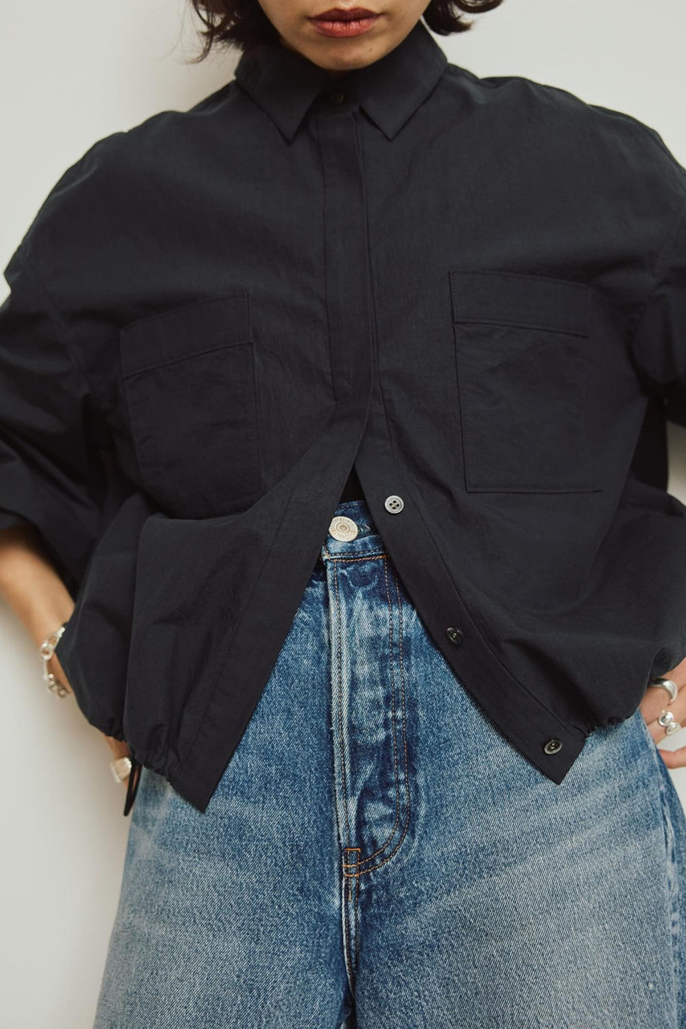 今シーズン真っ先に取り入れたい、羽織にもシャツにも着まわせるドローストリングシャツ。 コットン100%のナチュラルな風合いが柔らかく、スポーティーで様々なスタイルを今年顔に引き上げます。 注目のワイドなシルエットデニムとあわせても◎