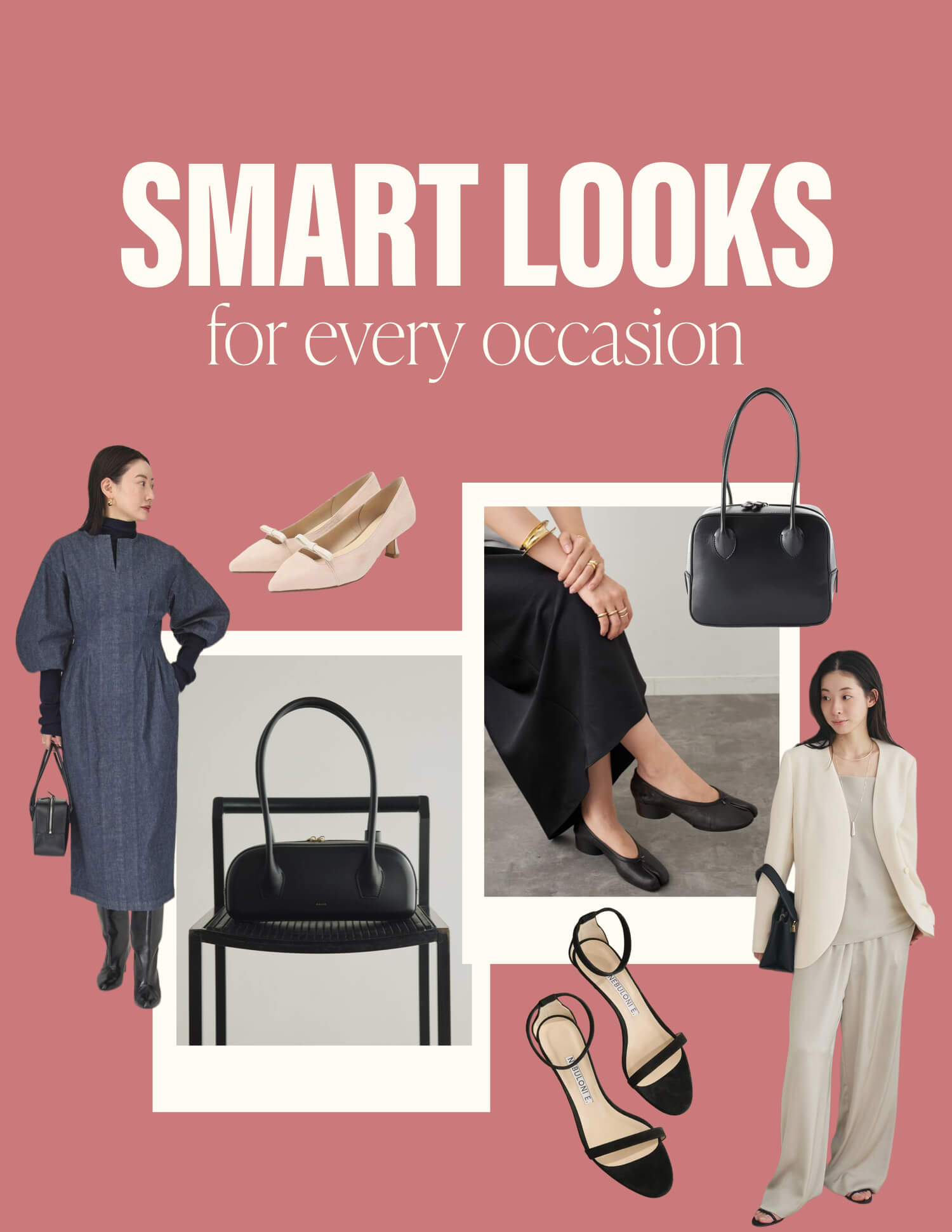 バッグやアクセサリーで、コーディネートに華をプラス。シンプルな服に合わせるだけで、印象がぐっと変わります。
