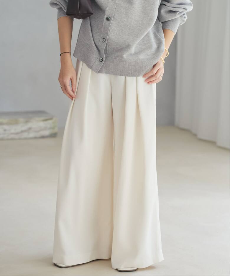 兼ね備えたボトムスシルエットにこだわったパンツやスカートで、フォーマルにもデイリーにも対応できるスタイルを。
