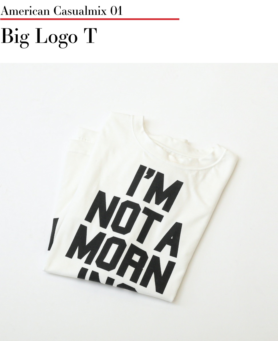 チャイロ×シロ×クロの新鮮な色合わせでコーディネートをぐっと大人っぽく。 - FRAMeWORKBIGロゴT5(ホワイト)◆¥11,550(税込)