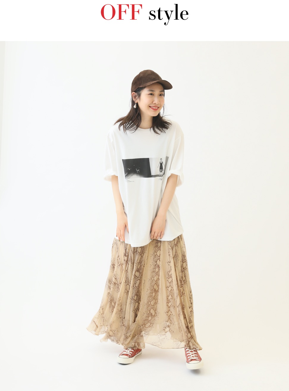 今回は着るだけで様になる、キャッチーなTシャツをON・OFFスタイルでご提案。