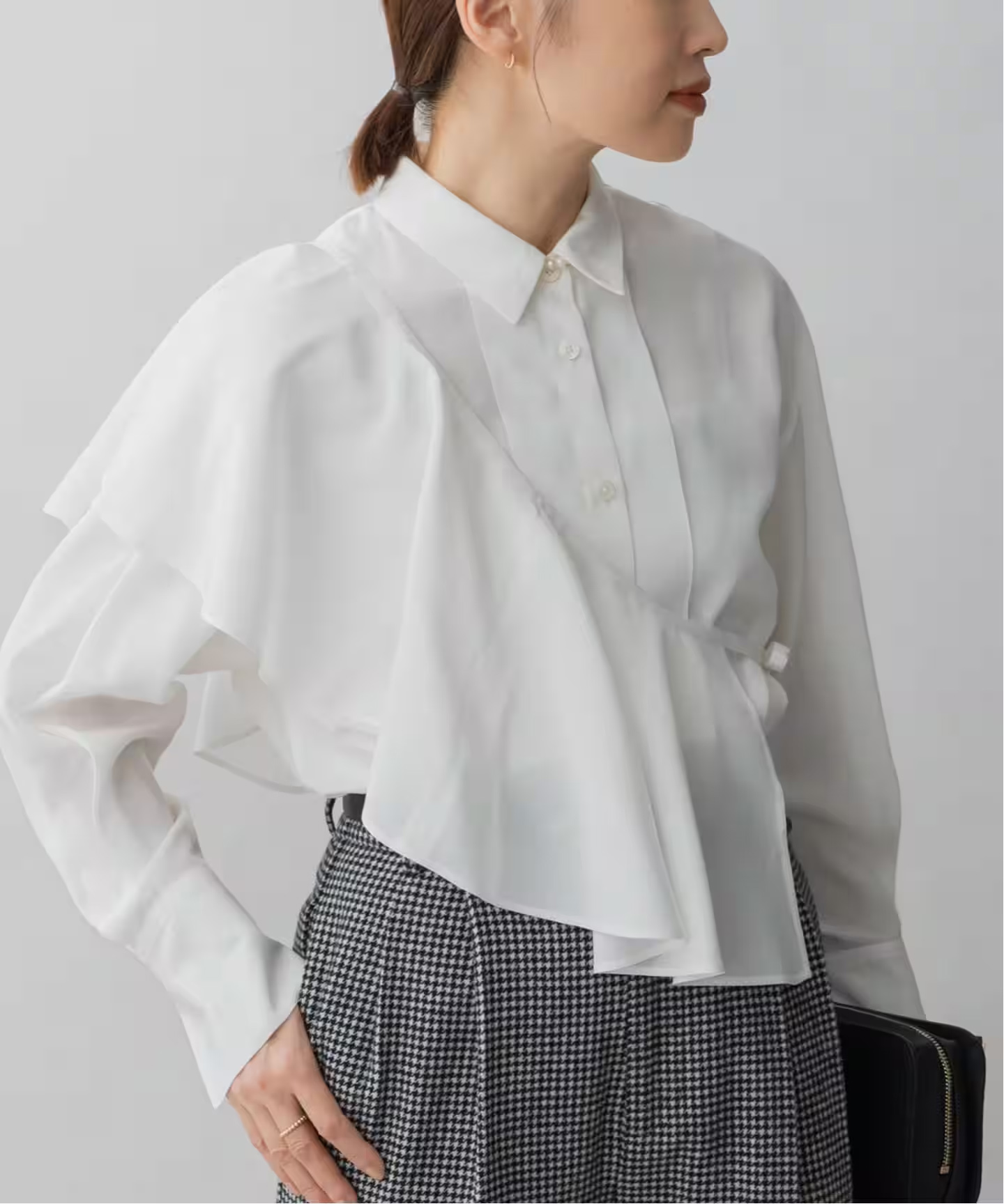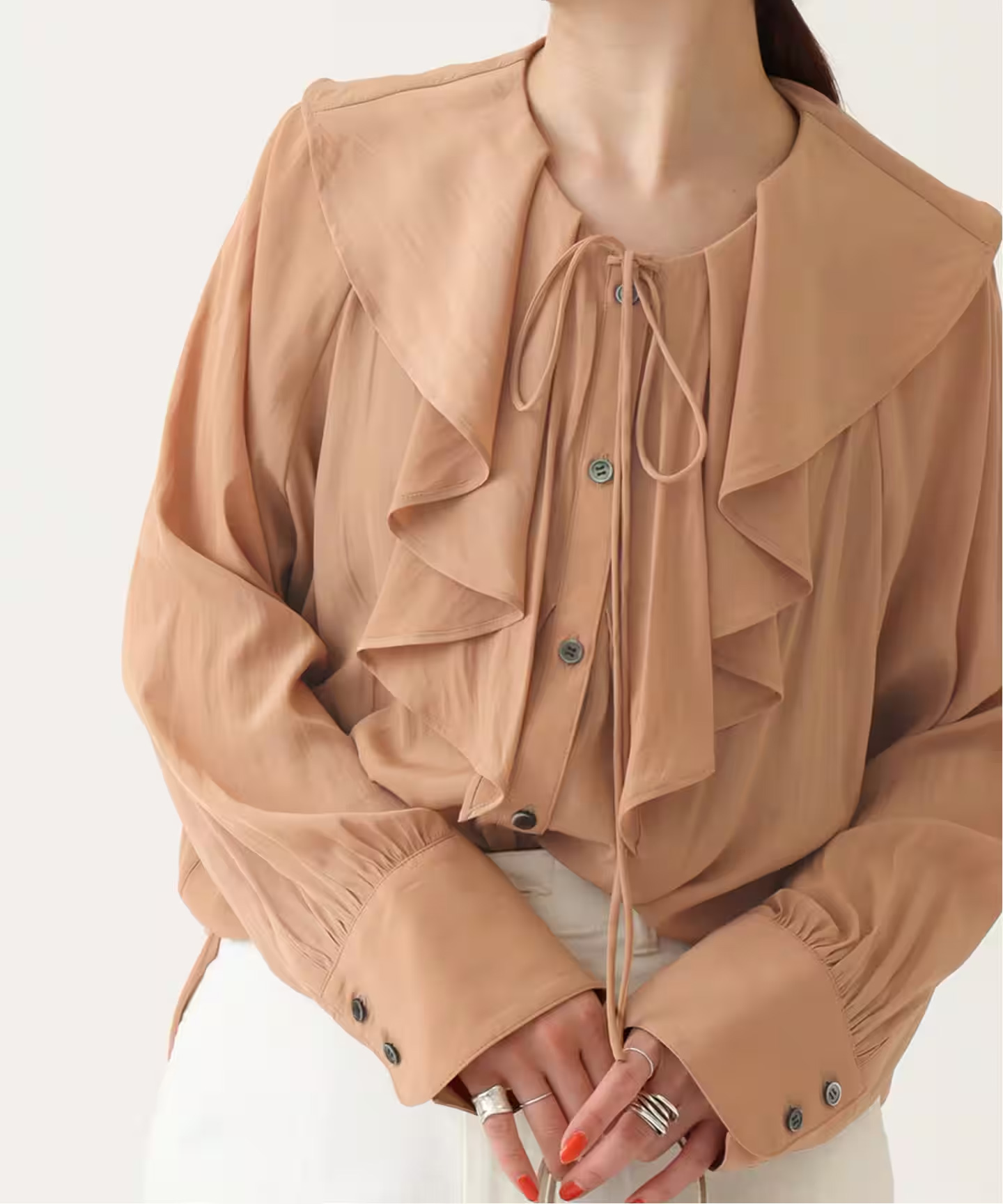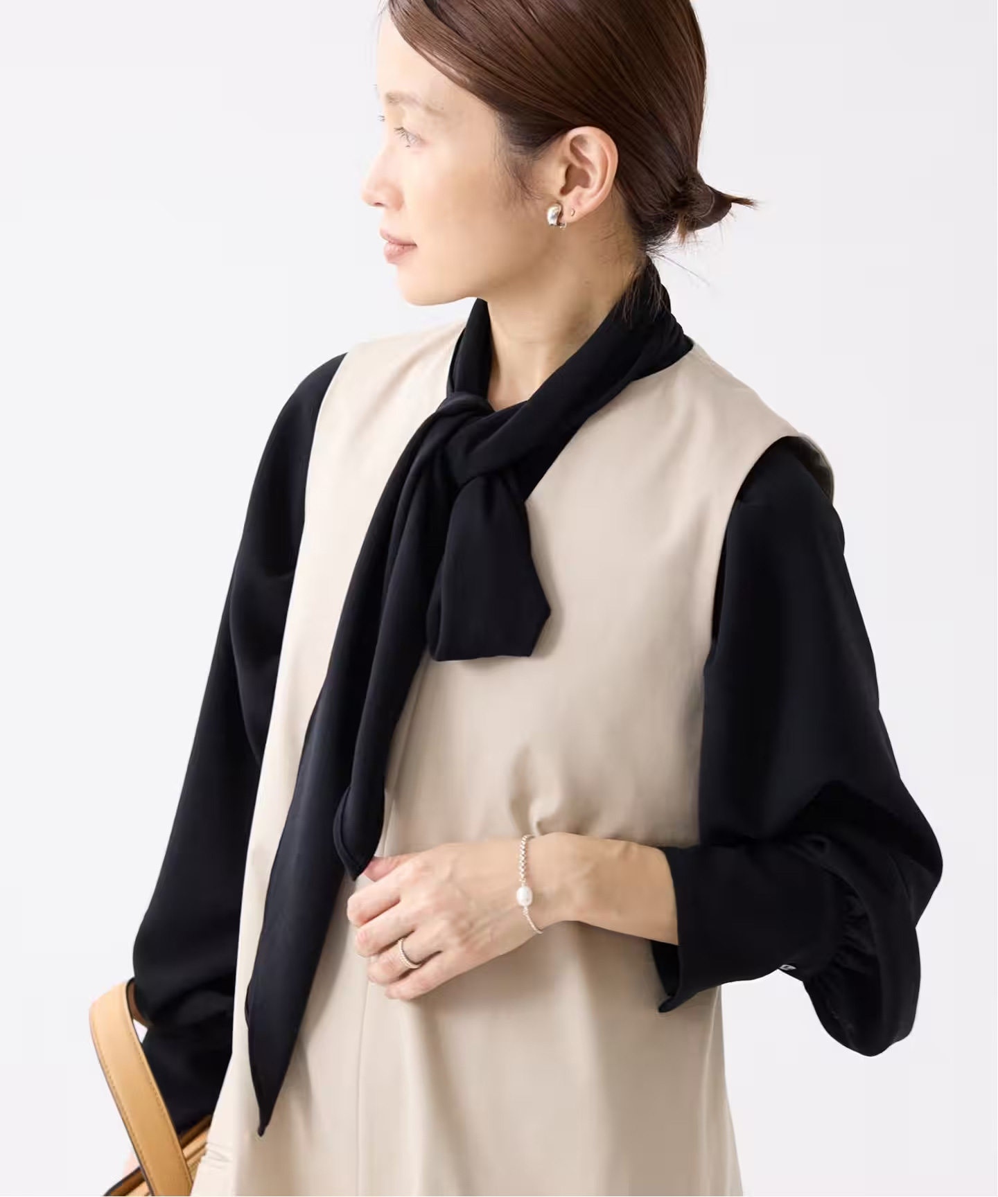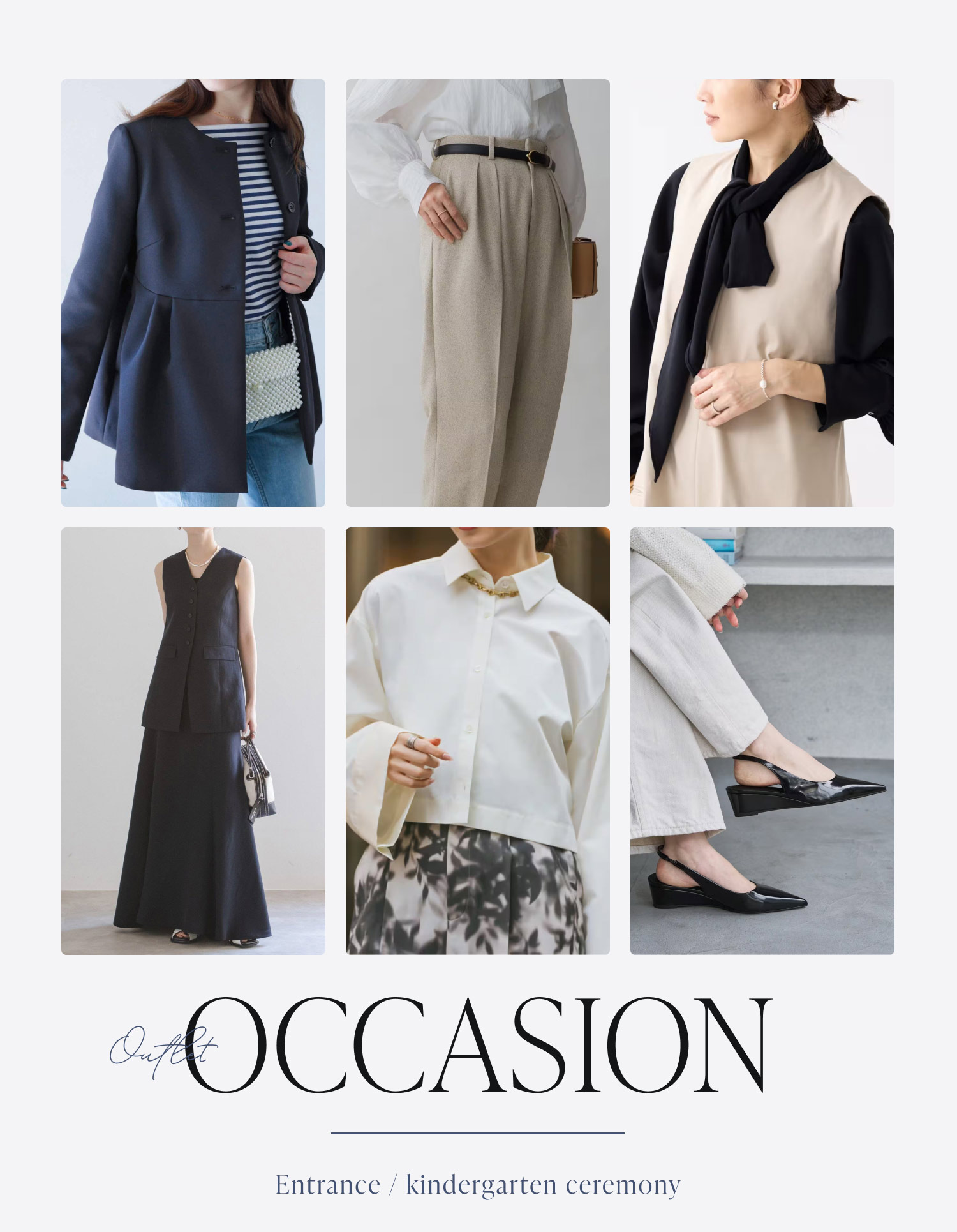 【ブラウス】顔まわりを華やかに見せてくれるブラウスは、写真に残る入学・入園シーンでは特に重要なアイテム。シンプルすぎず、でも甘すぎないデザインなら、式典後はオフィスや普段使いにも活躍。アウトレットで上品トップスを複数揃えるのもおすすめです。