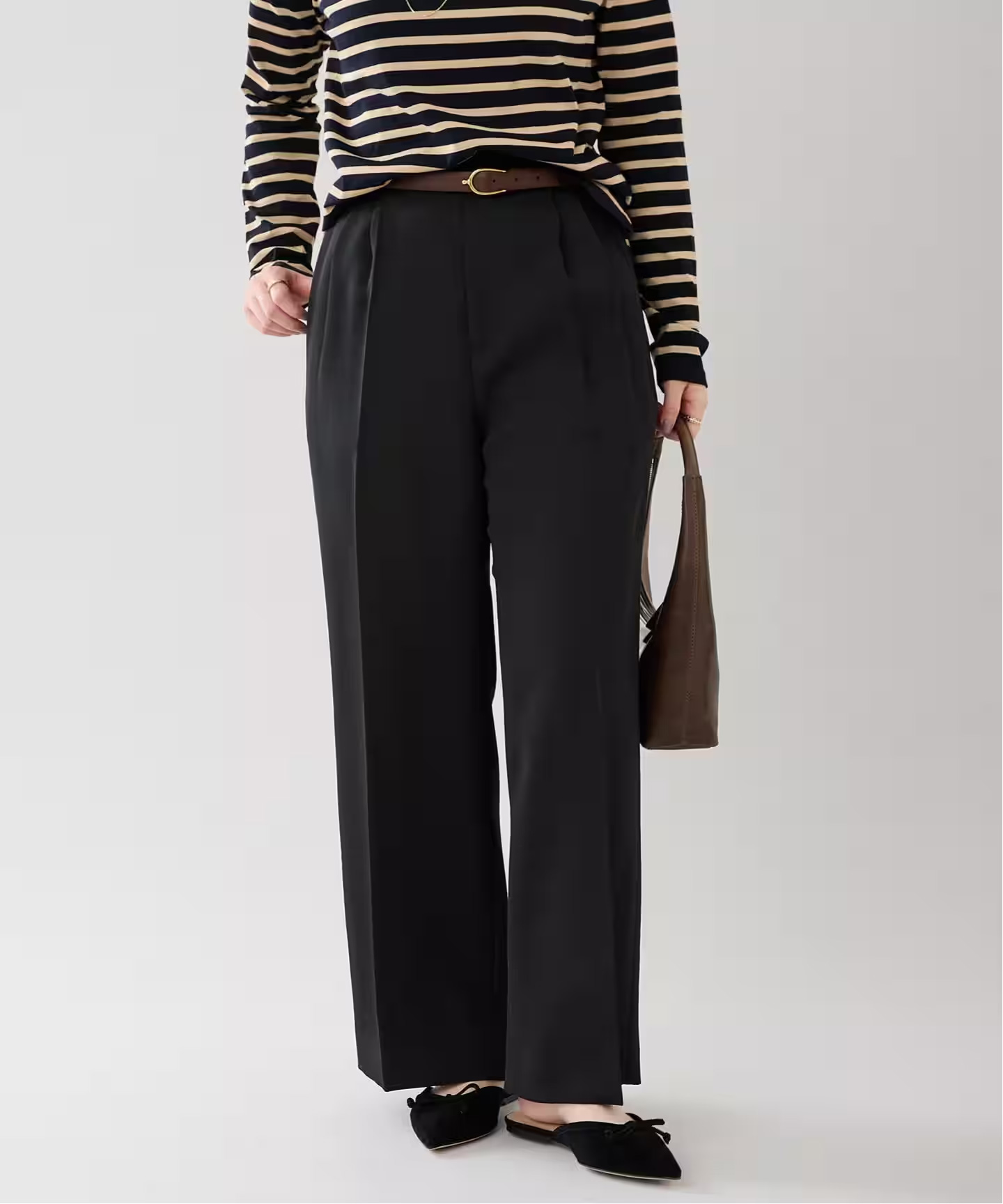 【パンツ・スカート】座ったり立ったりが多い入学・入園式では、見た目のきれいさと動きやすさの両立が大切。センタープレスパンツや上品スカートは、体のラインを拾いすぎず、きちんと感もキープ。式後は通勤や学校行事にも使える万能ボトムです。