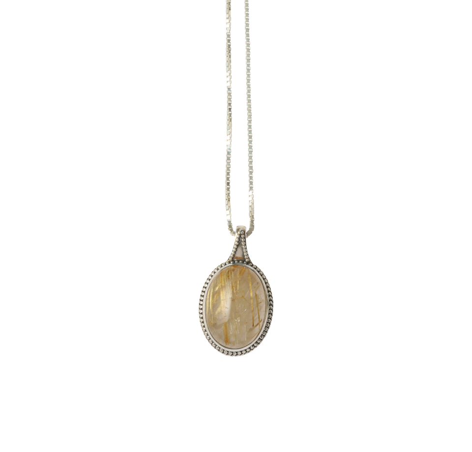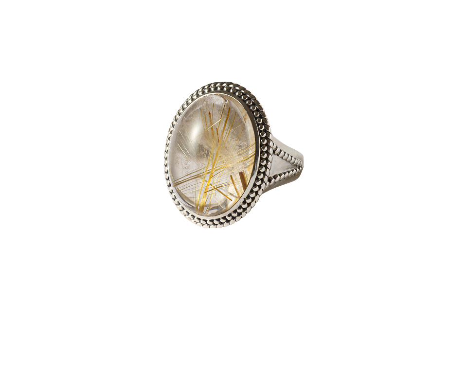 黄金のルチル(金線)が光を招き、明晰さと浄化、変容と勇気をもたらす石。ネガティブを払い、直感と創造性を高めて前向きな一歩を導きます。