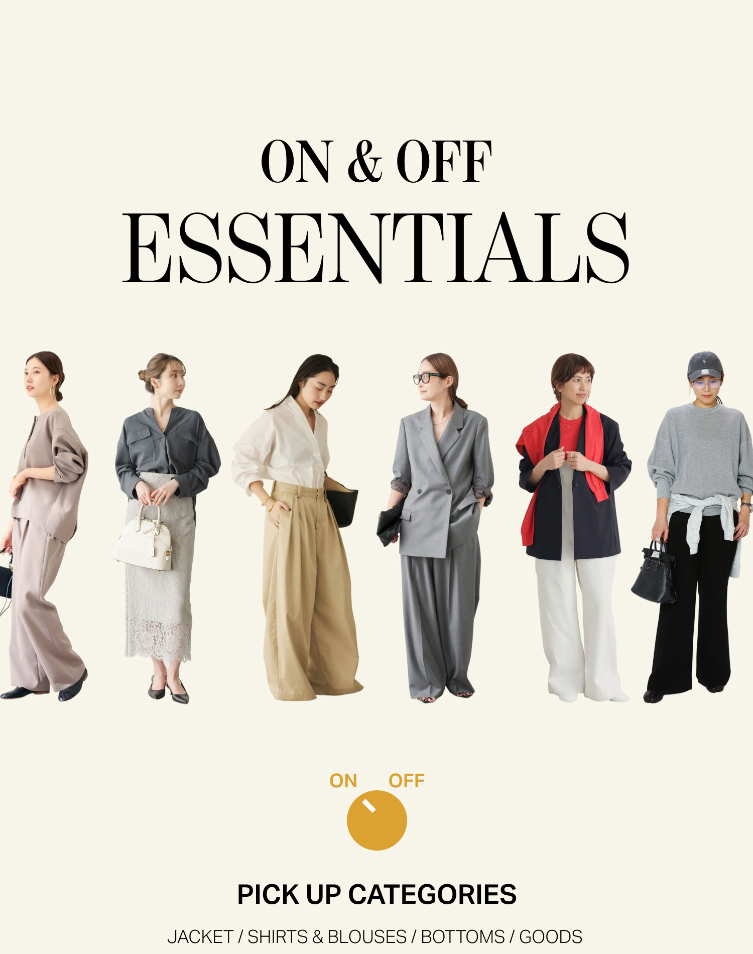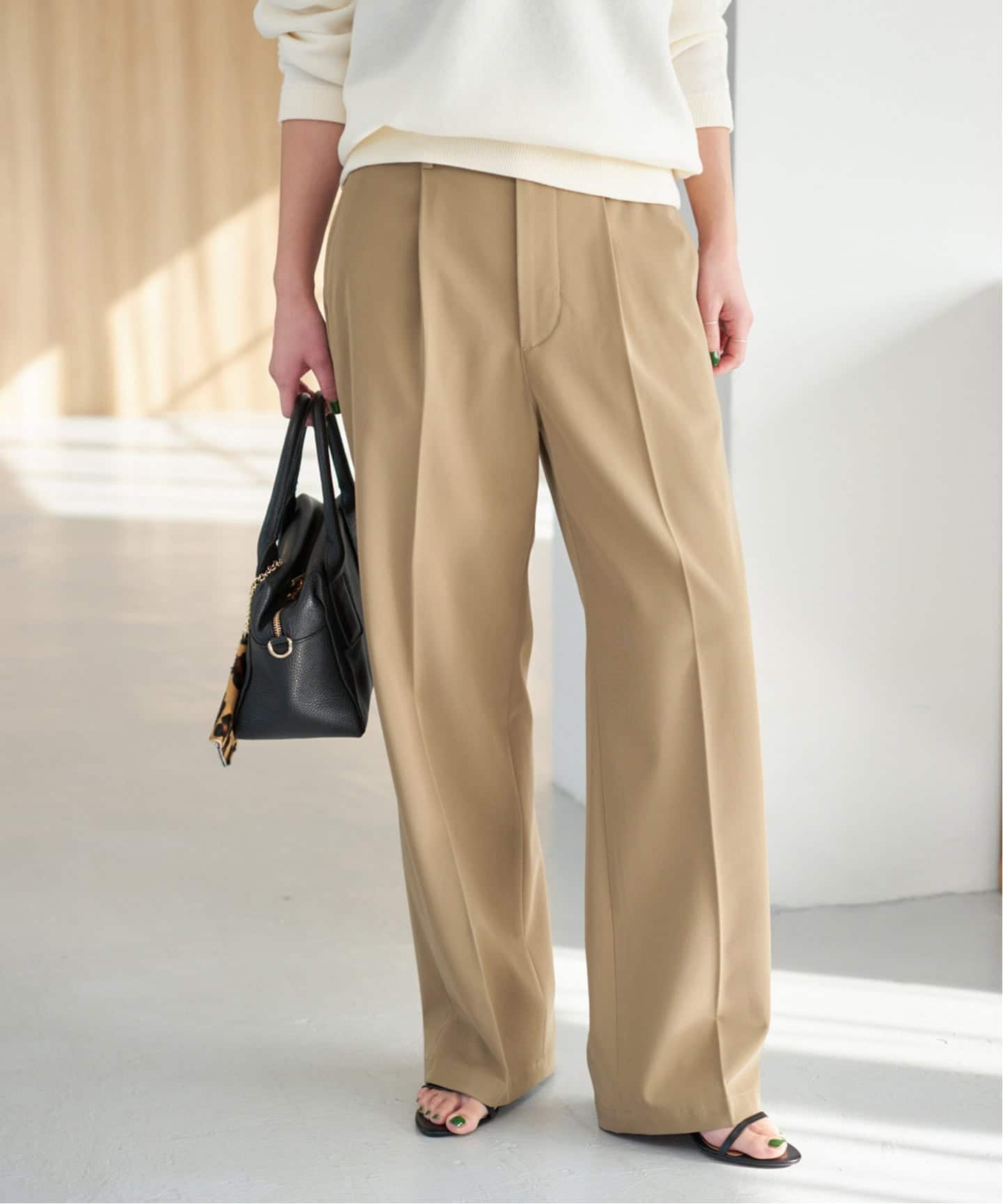 通勤に必要な上品さと、休日に欲しいリラクシーさ。その二つを叶えるのがON/OFF兼用のボトムス。快適なはき心地をキープしつつも、きちんと見えするデザインを選べば毎日のコーデがぐっとラクになります。