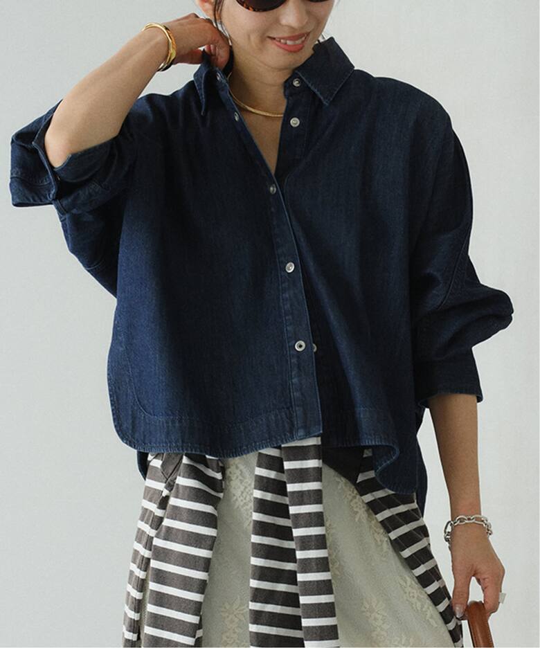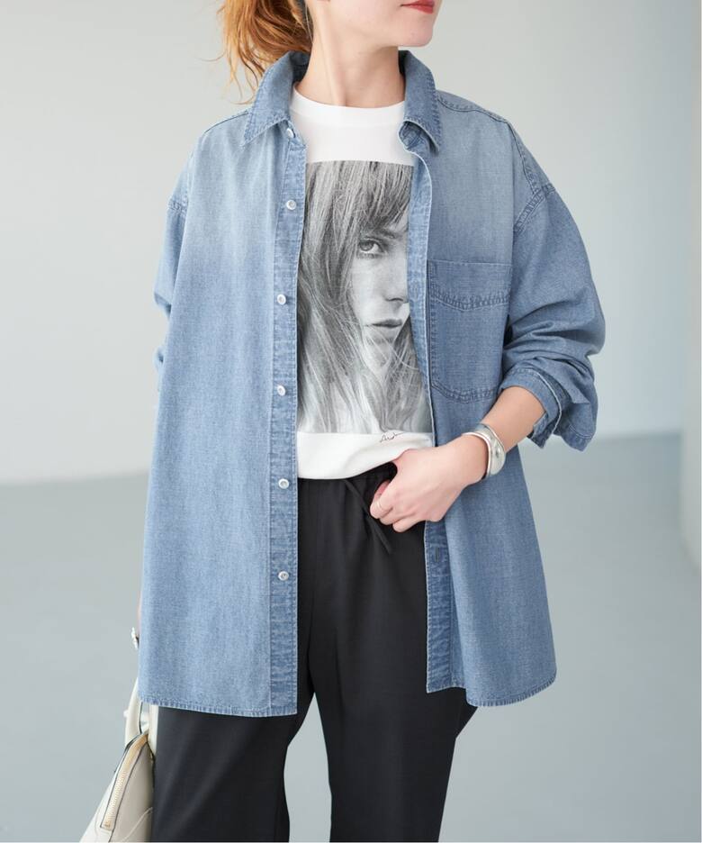 大人のデニムシャツ軽やかな素材感と程よいゆとりで、春の立ち上がりに活躍。一枚着から羽織りまで、着回し力の高さが魅力です。