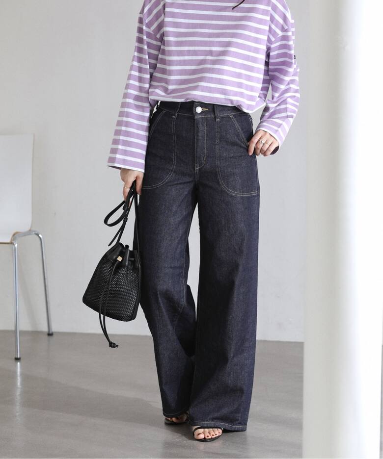 今どきデニムボトムワイドやストレートなど、今年らしいバランス感がポイント。トップスを選ばず、デイリーに頼れる一本を。
