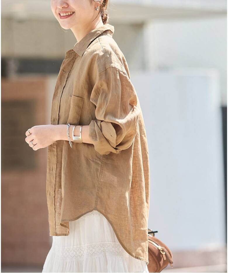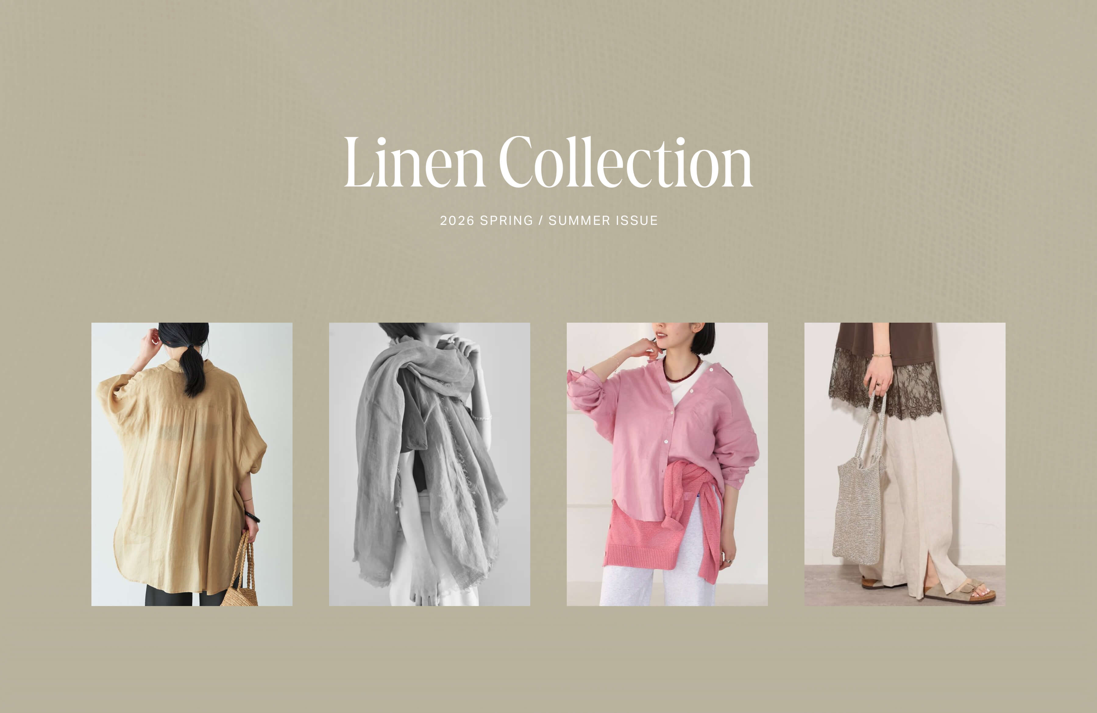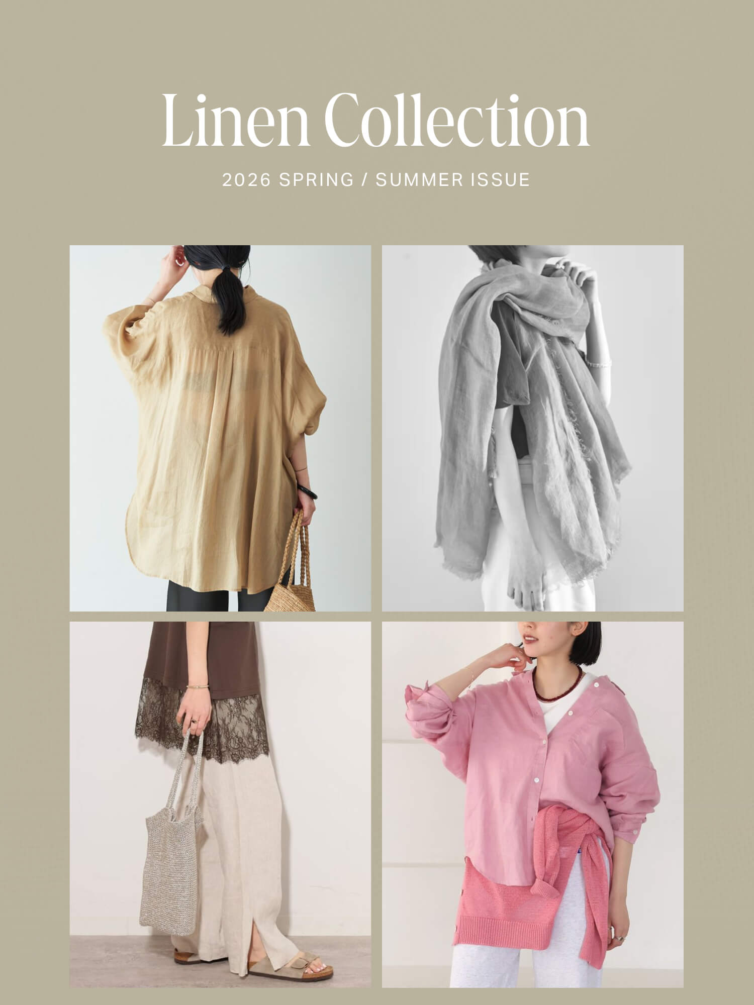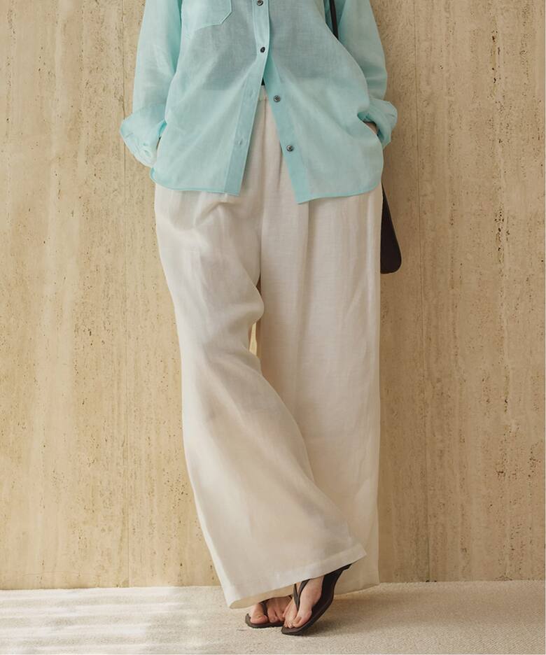 女性らしいリネンスタイル軽やかな素材感に、ほんのりとしたフェミニンさをひとさじ。甘すぎず、大人に着られるバランスのアイテムをご提案。