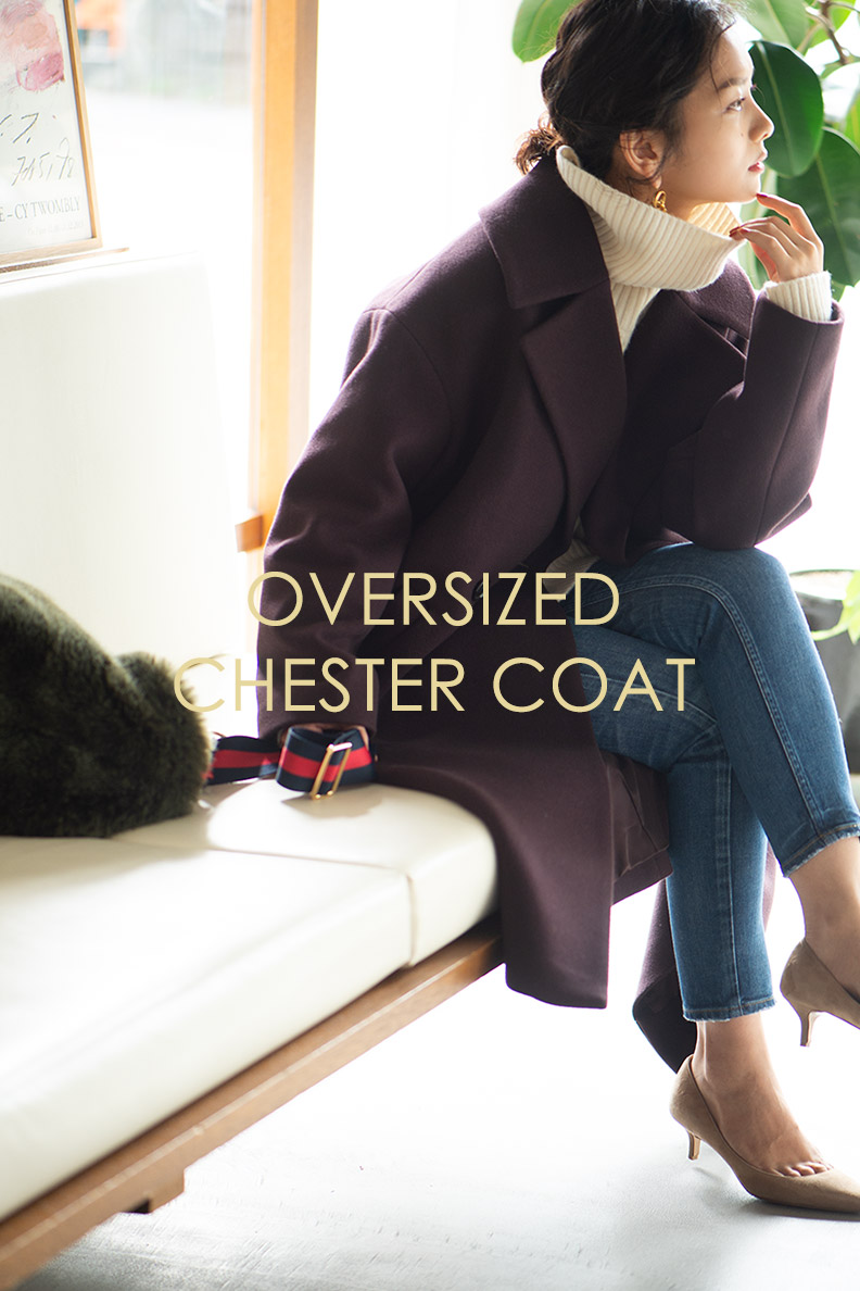 ボルドーとブラウンの間をとったような深みのあるカラーが色っぽいコート。すでに黒やネイビーなど、基本のダークカラーを持っている人にオススメ。大きく優雅な襟元と、ゆるさのあるラグランスリーブの調和がモダン。膨らみのあるビーバー二重織り素材がくどくない高級感を生んで、冬のシンプルコーデが格上げされる。