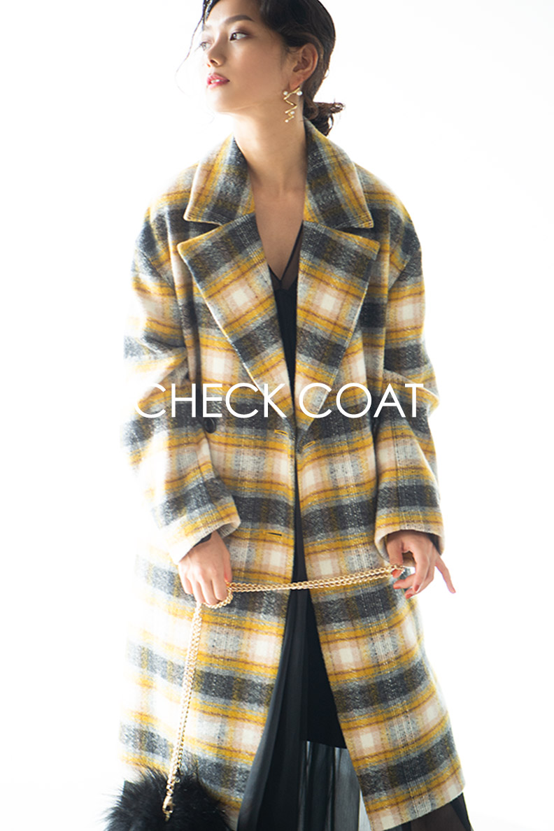 カラーコート同様、今季のトピックスとして注目なのが「チェック柄コート」。特にこんな思い切った大きめのチェックがトレンド。起毛した生地を使用しているから、メリハリがつきすぎず、大柄でも優しい雰囲気に。アイボリー、イエロー、ベージュの色味も軽やかさと温かみを両立できる。角のとれた丸みを帯びたシルエットも絶妙。