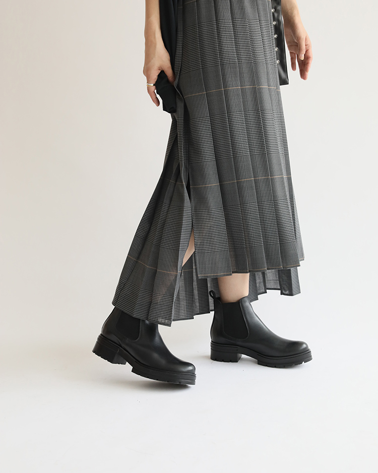 - 足元にはレザーで定評のある【MOHI】のサイドゴアブーツで秋を意識してみて。