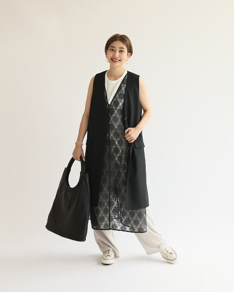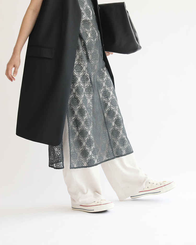 - 繊細なレースワンピースを入れて、きちんと感とトレンド感をプラス。