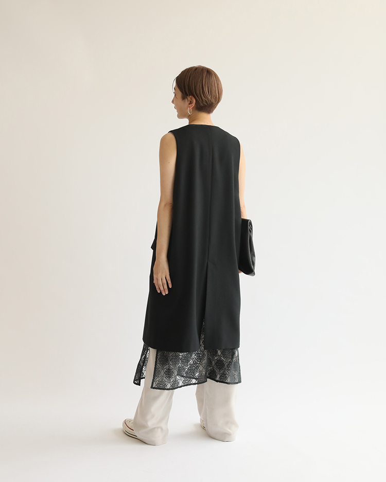 折り曲げて使ったりと着こなしによってアレンジができるのも嬉しいアイテム。 - JOURNAL STANDARDTWビエラロングベスト◆¥18,700(税込)