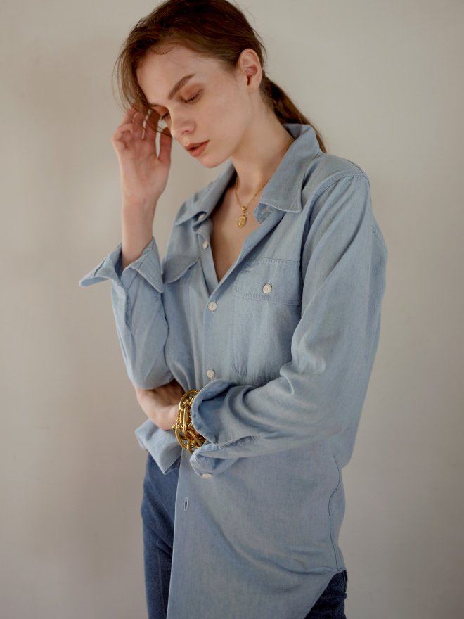 デニムシャツだって色っぽく着こなしたい。