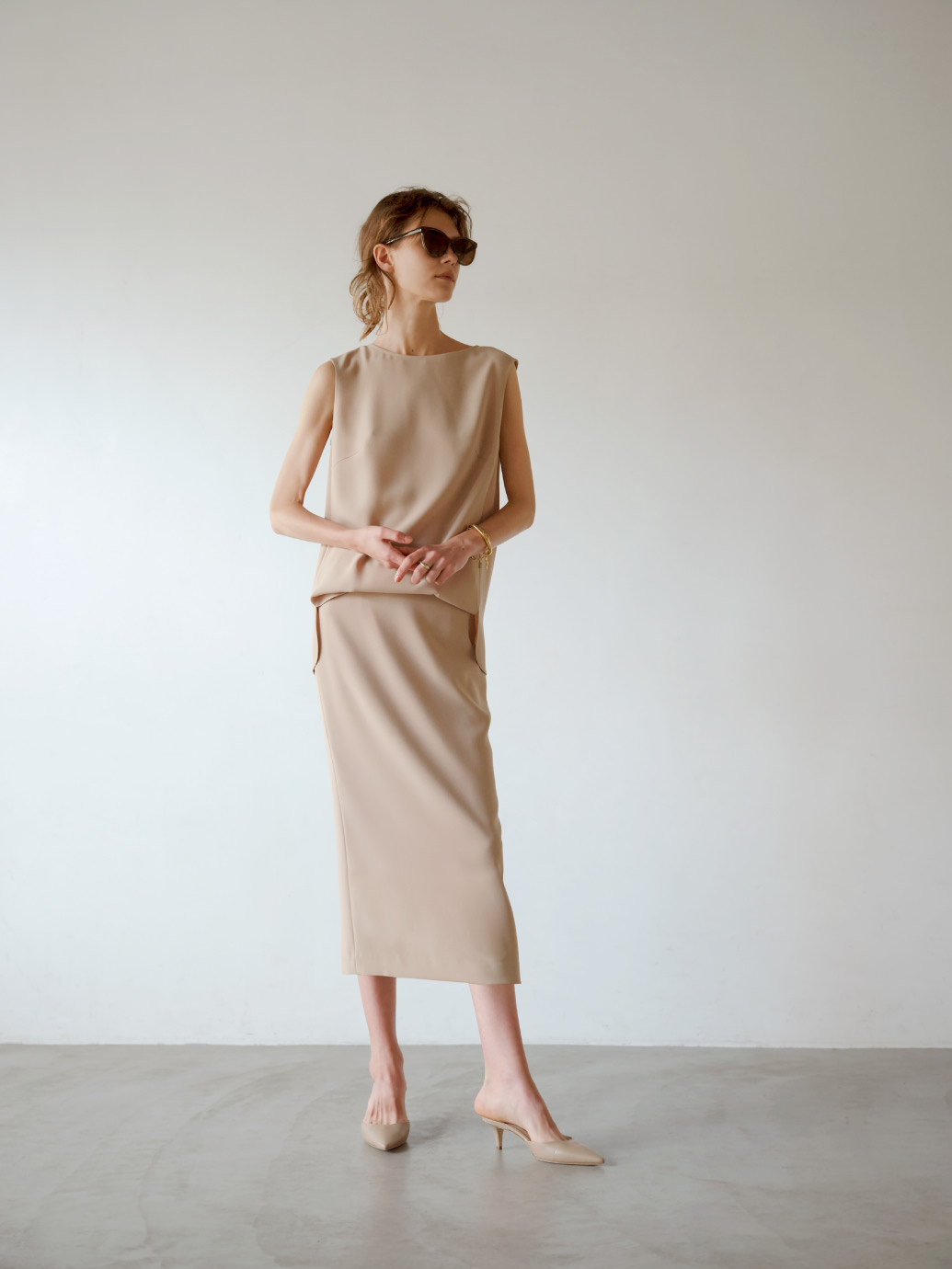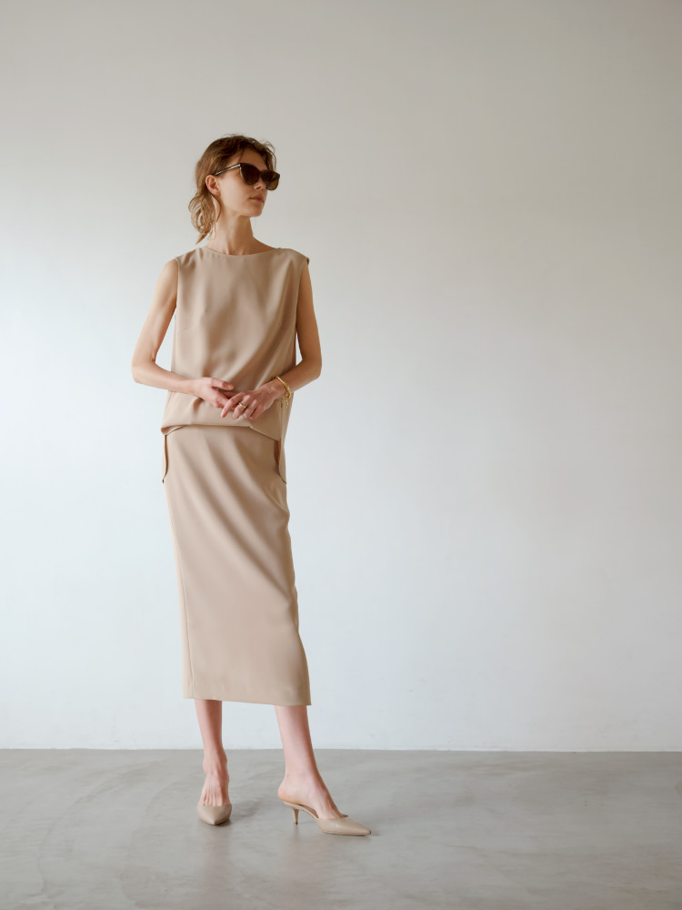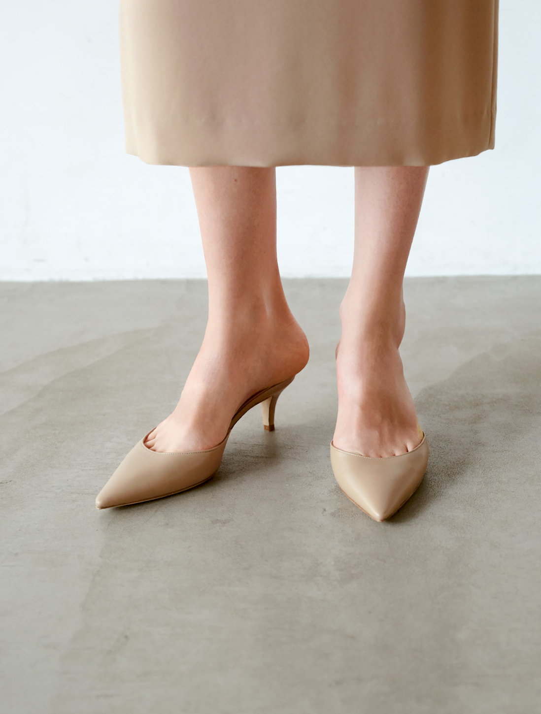 思わずため息が出るほど美しいその靴は、ずっと探し続けていたもの。"リッチ" その言葉似合う表革のベージュカラーは程よい存在感を放ち、履くだけで女度が上がるミュールです。