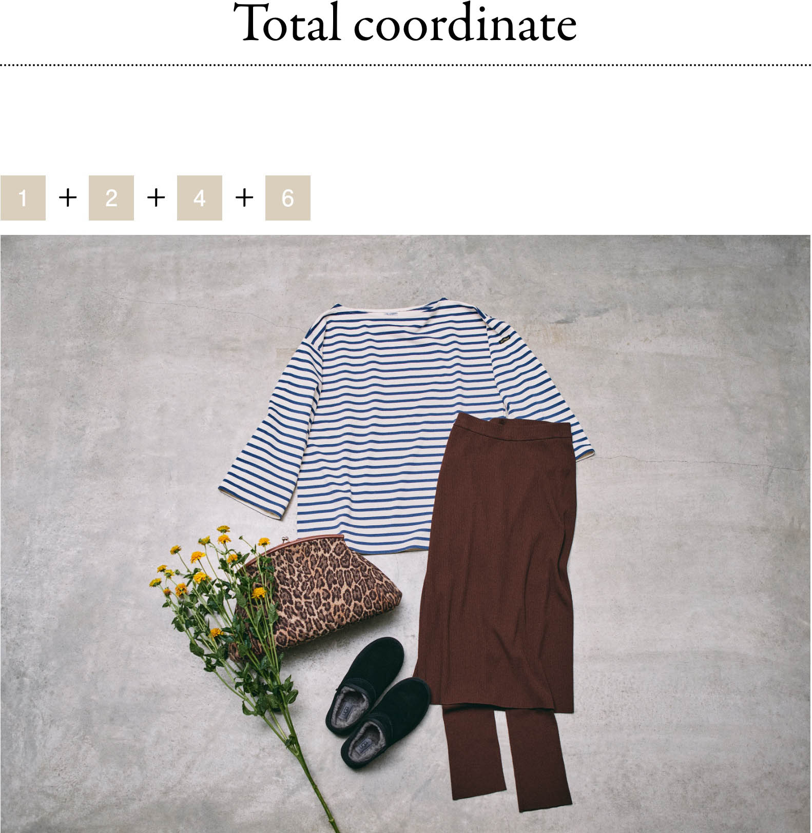 - ニットのセットアップにボーダーを合わせて大人カジュアルなスタリングに。