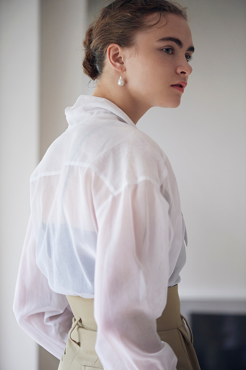 - シアーな素材と構築的なシルエット。