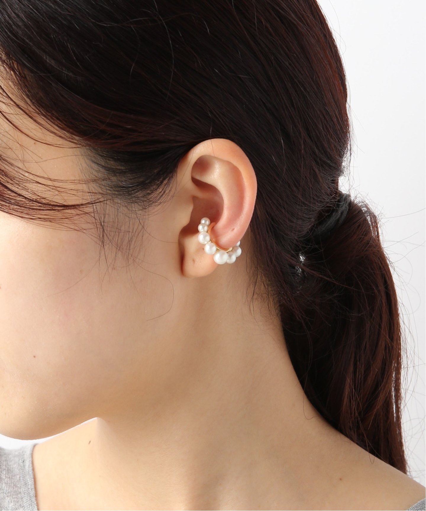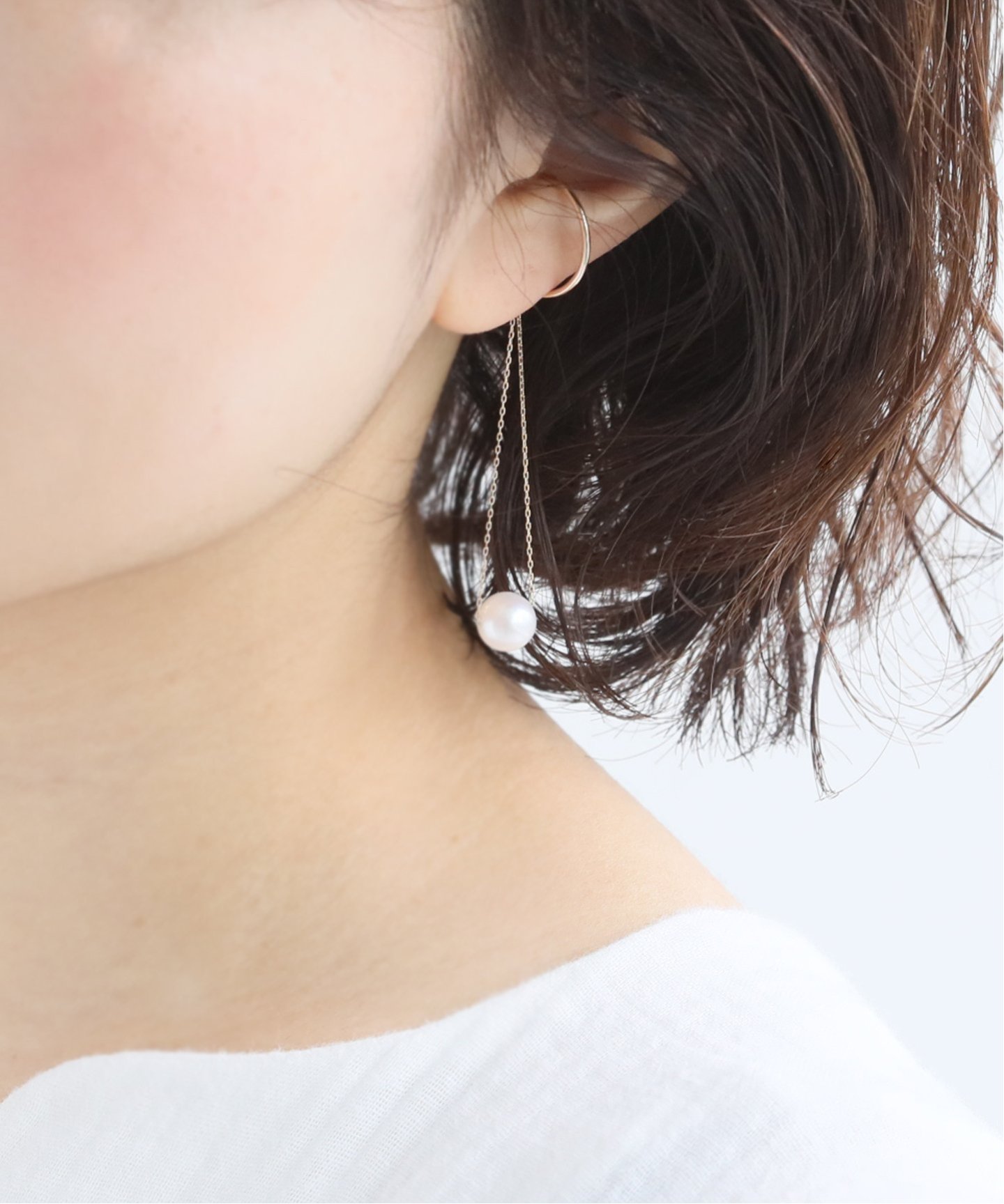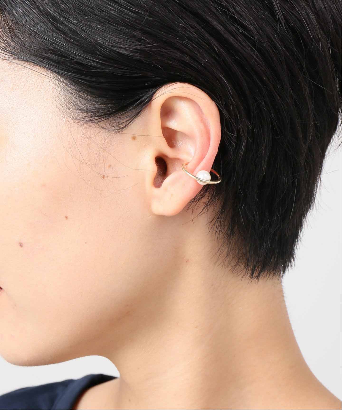 重ね付けもしやすい繊細なイヤーカフ華奢な地金に1点パールをあしらったイヤーカフは